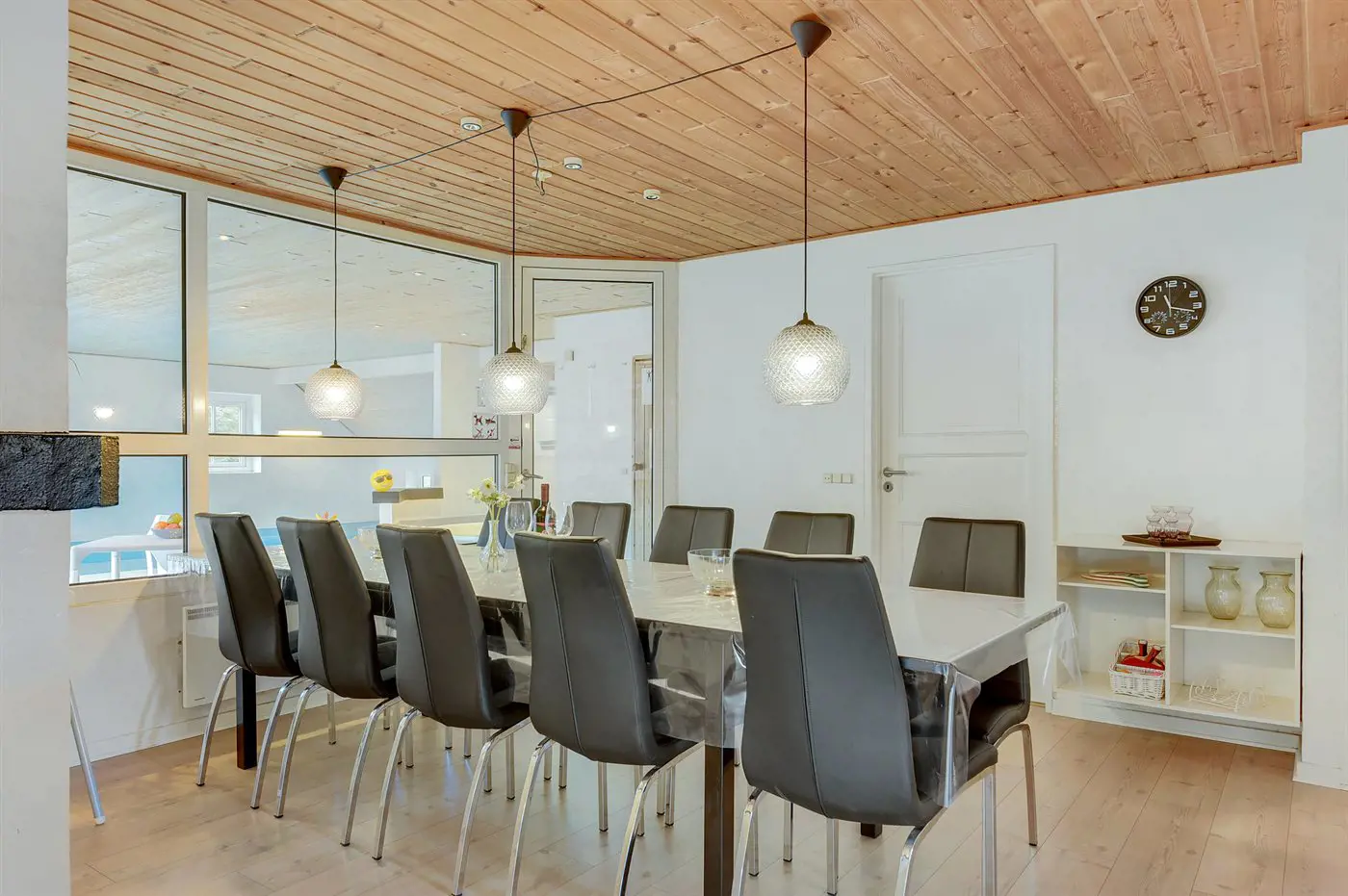 Das Ferienhaus eignet sich für 10 Personen sowie 1 Kleinkind bis zu 3 Jahren. Die Ferienunterkunft hat eine Wohnfläche von 192 m² und wurde 1992 gebaut. 2018 wurde die Ferienunterkunft teilweise renoviert. Es ist erlaubt 2 Haustiere mitzubringen. Die Ferienunterkunft ist mit 1 energiefreundlichen Luft-Wasser-Wärmepumpe und 1 energiefreundlichen Luft-Luft-Wärmepumpe ausgestattet. Fußbodenheizung in allen Klinkerböden. Die Ferienunterkunft ist mit Waschmaschine ausgestattet. Wäschetrockner. Tiefkühlmöglichkeit mit 50 Liter Nutzinhalt. Es gibt außerdem einen Kaminofen. Für die jüngsten Feriengäste ist 1 Kinderhochstuhl vorhanden.
