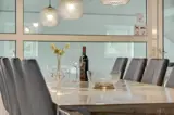 Die Küche ist mit Kühlschrank ausgestattet. Außerdem gibt es 4 Keramik-Kochfelder, Umluftofen, Mikrowelle sowie Geschirrspüler.