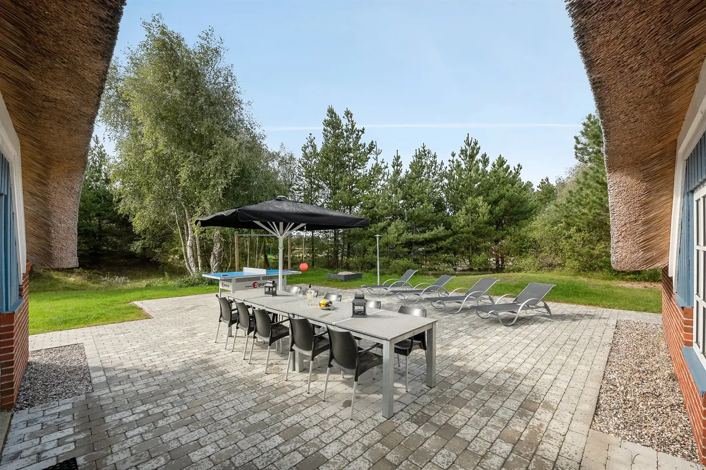 Die Ferienunterkunft liegt auf einem 2500 m² großen Naturgrundstück. Die Entfernung zum Meer beträgt 3200 m.Die Entfernung zum Wattenmeer beträgt 1000 m. Die nächste Einkaufsmöglichkeit liegt 4000 m entfernt. In einem Abstand von 5000 m gibt es einen Golfplatz. Es steht ein offenes Terrassenareal zur Verfügung. Schaukel. Sandkasten. Outdoor-Tischtennis. Es steht ein Grill zur Verfügung. Parkplatz auf dem Grundstück.