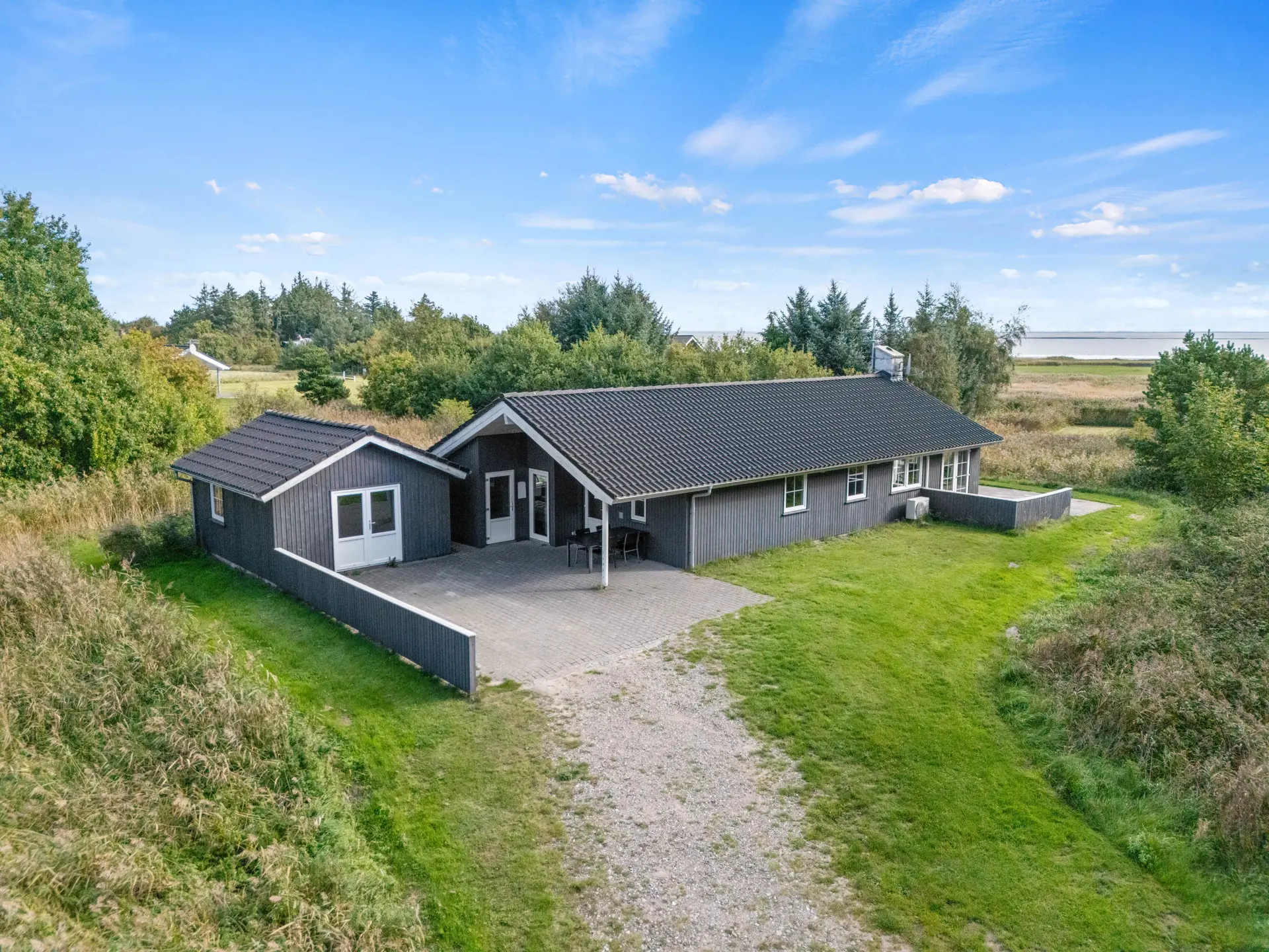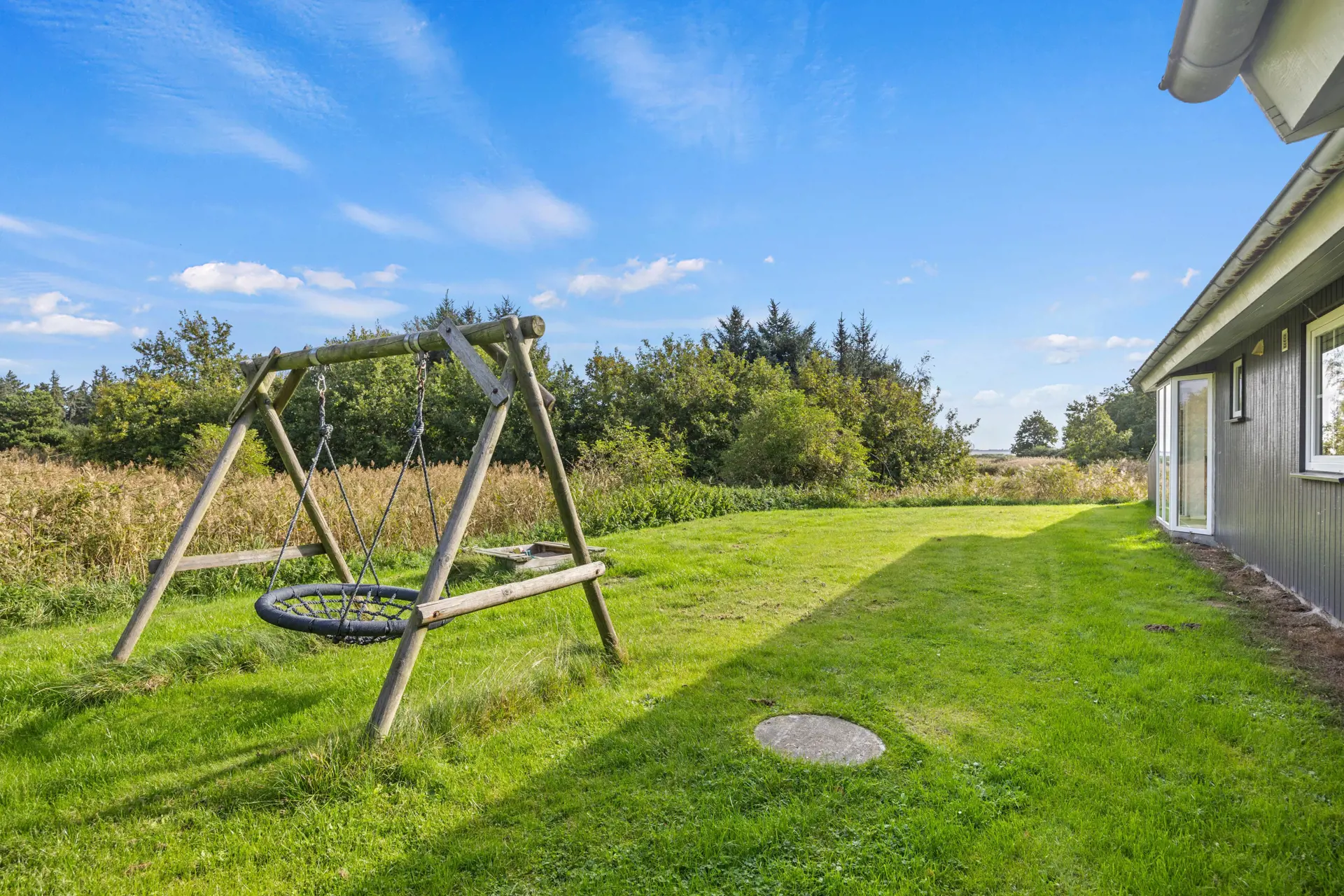Auf dem 2500 m² großen Naturgrundstück erwartet euch ein wahres Paradies für Kinder: eine Schaukel und ein Sandkasten bieten Spiel und Spaß. Genießt den Panoramablick, während ihr im Freien die frische Luft einatmet. Der nur 250 Meter entfernte Strand des Wattenmeeres lässt die Herzen von Wasserliebhabern höher schlagen. Ein Spaziergang entlang des Wassers oder ein Ausflug in die Natur sorgt für Erholung pur. Die mit dem Auto befahrbaren Strandabschnitte Lakolk (5500 Meter) sowie Sonderstrand (3500 Meter) sind immer einen Ausflug an die tosende Nordsee der dänischen Westküste wert.