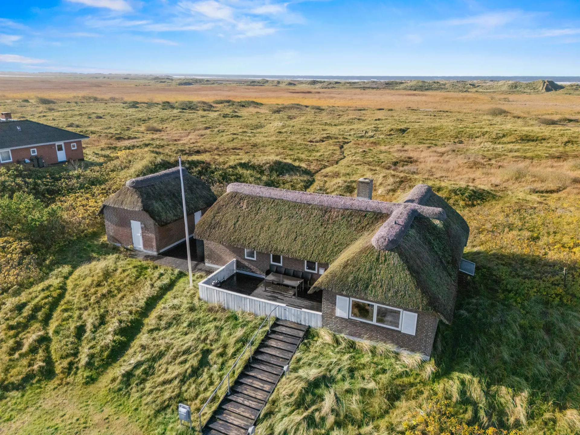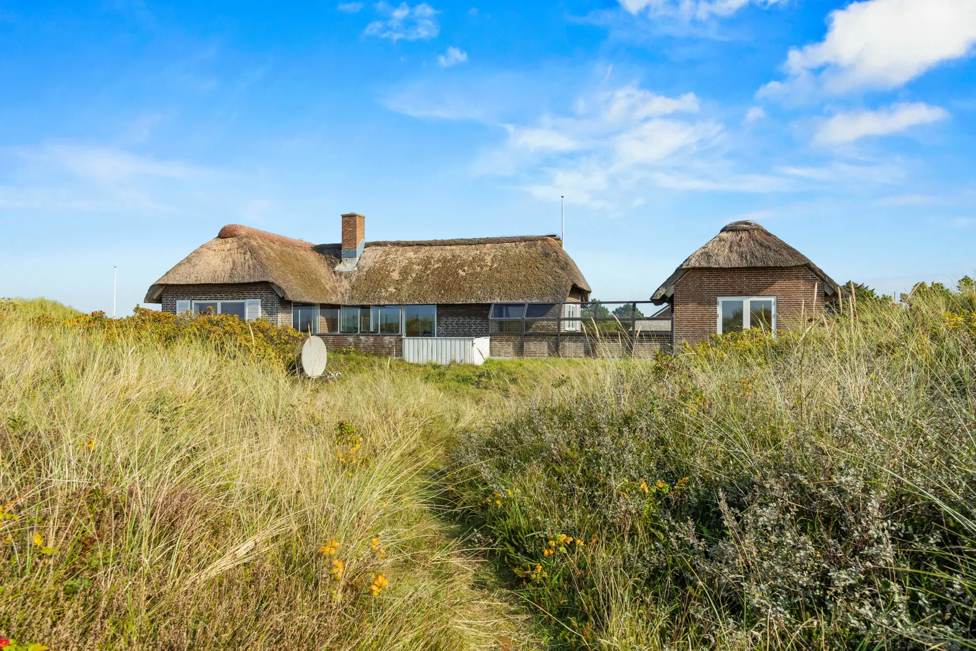 Dieses Reetdachhaus in Lakolk 300 auf Rømø liegt auf einer Anhöhe mit fantastischer Aussicht über die Dünen, hinter denen der große, weiße Sandstrand liegt. Das reetgedeckte Haus bietet Platz für bis zu 8 Personen und 2 Hunde.