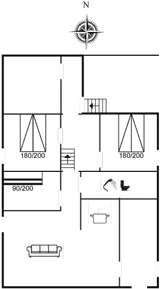 Die Schlafplätze verteilen sich auf 3 Schlafräume. 4 Schlafplätze in Doppelbetten. 2 Schlafplätze in einem Etagenbett. Ferner steht ein Kinderbett zur Verfügung.