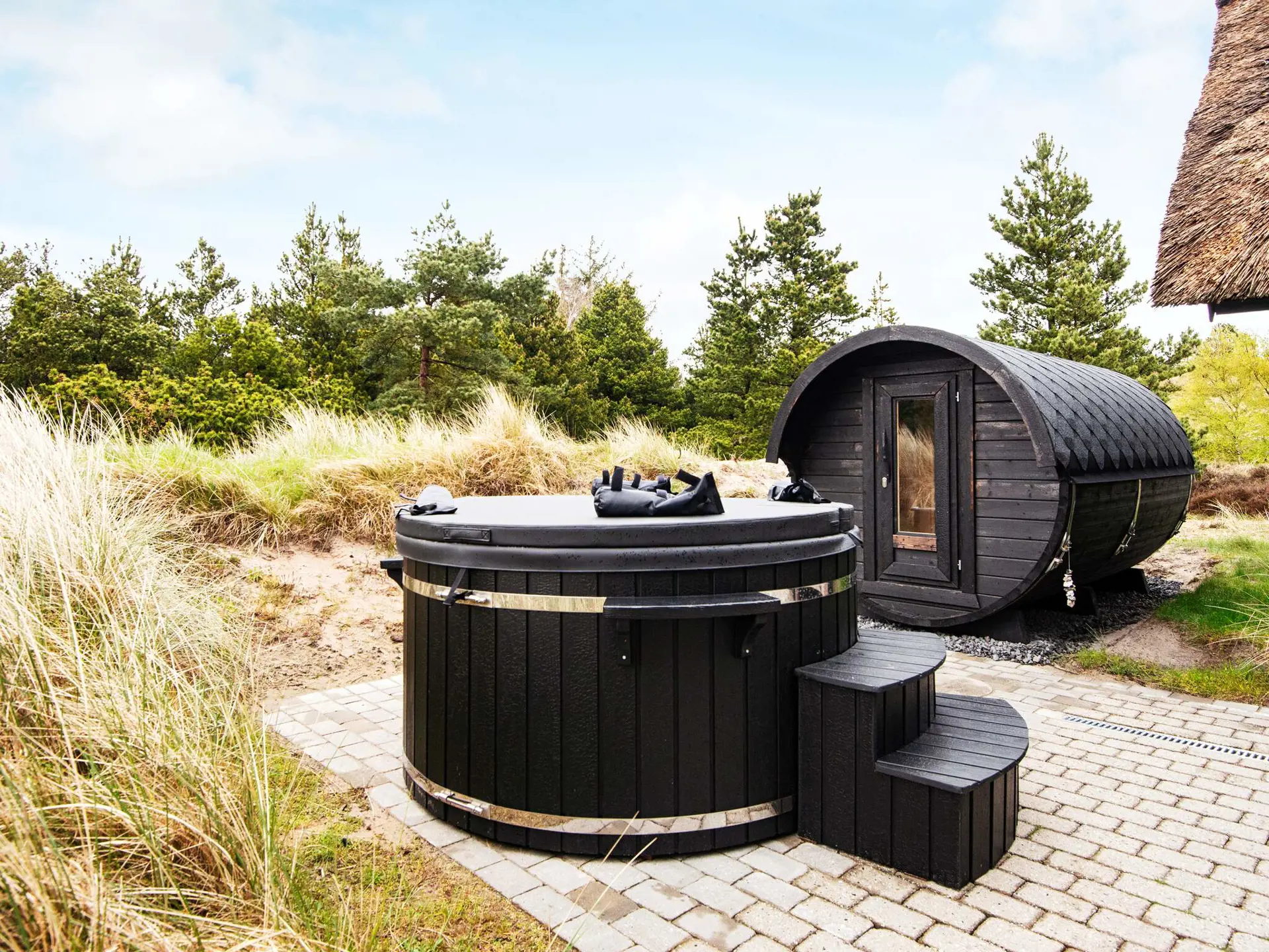 Es gibt mehrere Terrassen ringum das Ferienhaus, sodass Sie morgens und auch abends die Sonne im Freien genießen können. Ab dem 01.04.2023 gibt es ein Saunafass und eine Wildniskost.