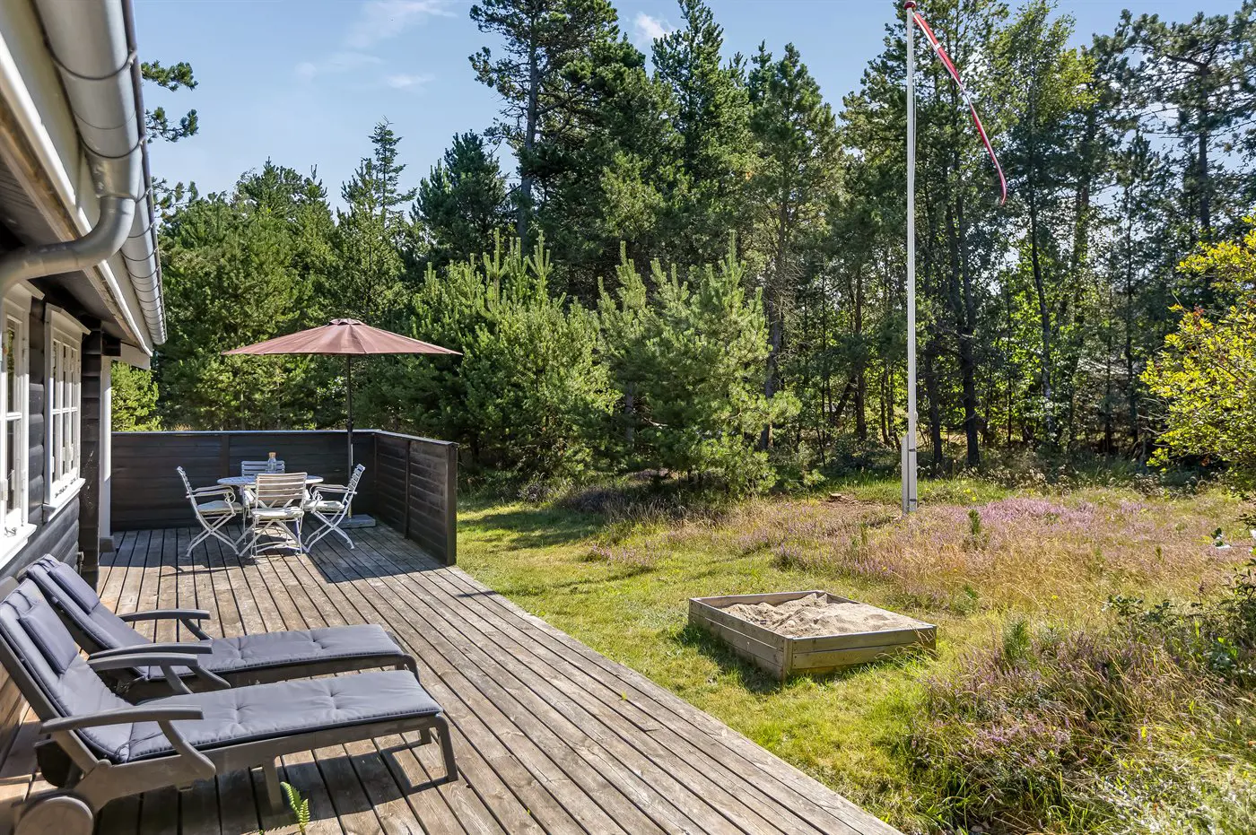 Die Ferienunterkunft liegt auf einem 3000 m² großen Naturgrundstück. Die Entfernung zum Meer beträgt 800 m.Die Entfernung zum Wattenmeer beträgt 2000 m. Die nächste Einkaufsmöglichkeit liegt 1400 m entfernt. In einem Abstand von 800 m gibt es einen Golfplatz. Es steht ein offenes Terrassenareal zur Verfügung. Außerdem gibt es überdachte Terrasse. Schaukel. Sandkasten. Trampolin. Es steht ein Grill zur Verfügung. Es ist ein Ladestecker für Elektroautos installiert. Ladestecker Typ 2. Mit einer Ladeleistung von 11 kW. Parkplatz auf dem Grundstück.