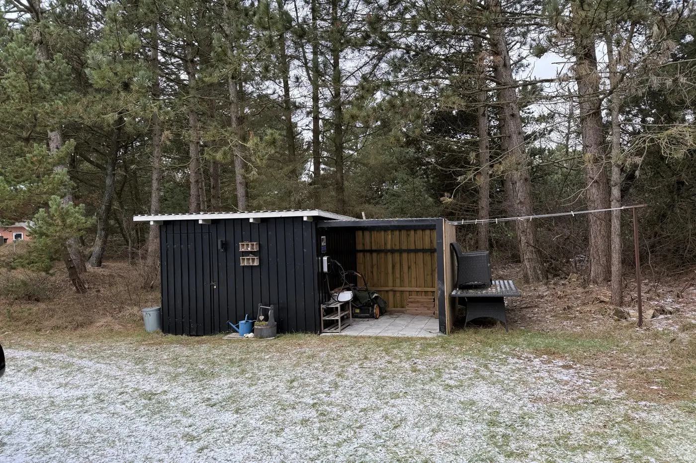 Dieses gemütliche Ferienhaus aus Holz mit Reetdach, 1973 gebaut, liegt auf einem schönen, großen und mit Heidekraut bewachsenen Naturgrundstück mit Rasen. Zum Haus gehört eine schöne, abgeschirmte und zum Teil überdachte Terrasse mit Gartenmöbeln. Die helle Küche ist mit dem Wohnzimmer kombiniert und u. a. mit Geschirrspüler und Mikrowelle ausgestattet. In dem gemütlich eingerichteten Wohnzimmer, mit Ausgang zur Terrasse, finden Sie Kaminofen, DVD-Spieler, TV mit digitalem Satellitenanschluss und digitales Radio. Die Schlafplätze verteilen sich auf 3 Zimmer, alle mit Doppelbett. Badezimmer mit Dusche und Waschmaschine. An weiterer Ausstattung können kostenlose, kabellose Internetverbindung (Computer ist mitzubringen), Kinderbett und Kinderhochstuhl erwähnt werden. Holzböden und Fliesenboden im Badezimmer.