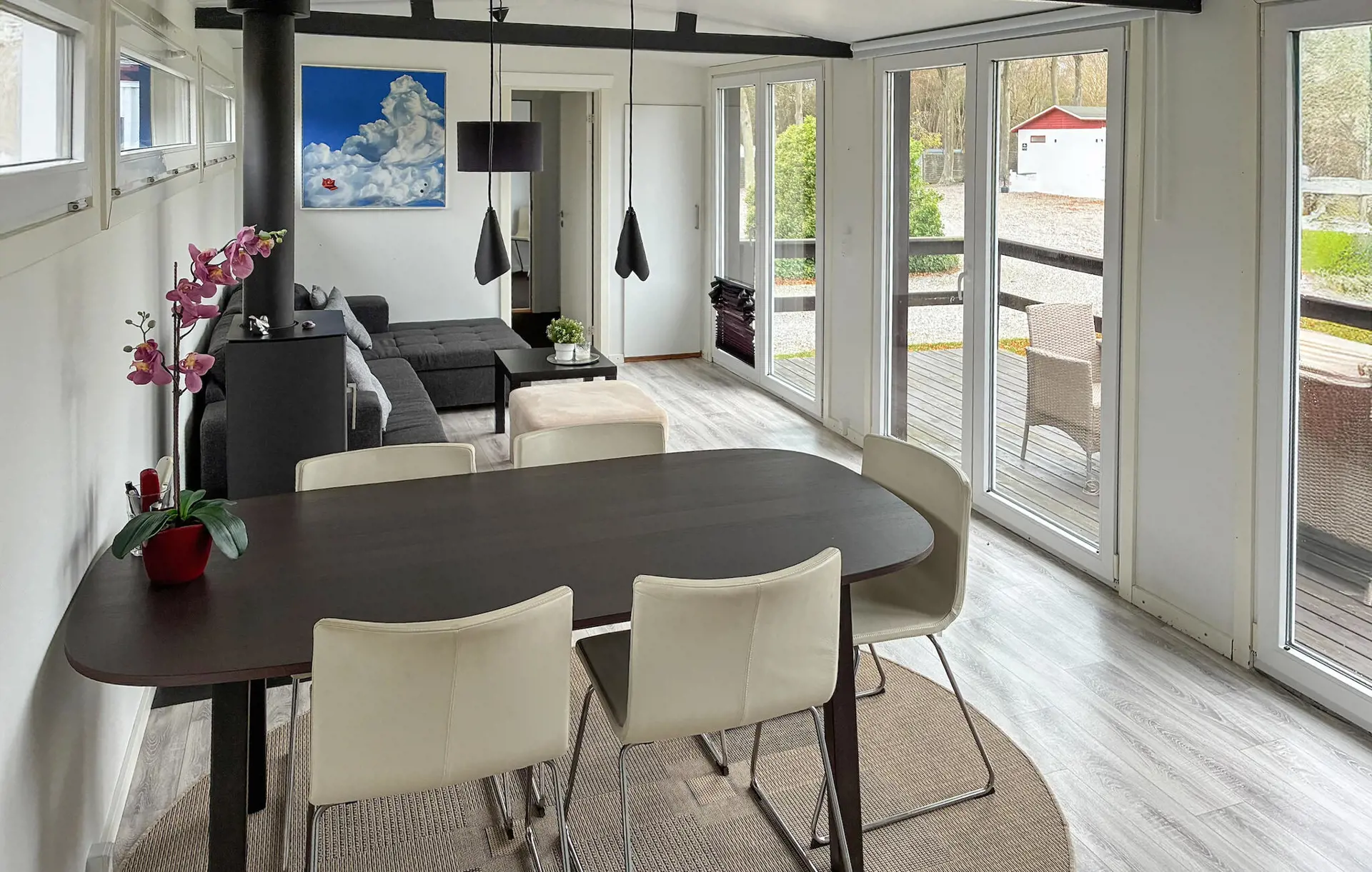 Freuen Sie sich im Innenbereich auf ein helles, offenes Ambiente, das Sie eine entspannte Atmosphäre schafft. Nutzen Sie die verschiedenen Sitzbereiche ganz nach Ihren Bedürfnissen, ob für ausgedehnte Mahlzeiten, gesellige Runden oder ruhige Augenblicke mit einem guten Buch. Setzen Sie sich an den einladenden Esstisch oder entspannen Sie auf dem bequemen Sofa, die sich ideal für einen entspannten Abend eignet. Bereiten Sie in der offenen Küche Ihre Lieblingsgerichte zu und genießen Sie das Kochen in angenehmer Gesellschaft. Genießen Sie auch die wohltuende Wärme des Kaminofens.