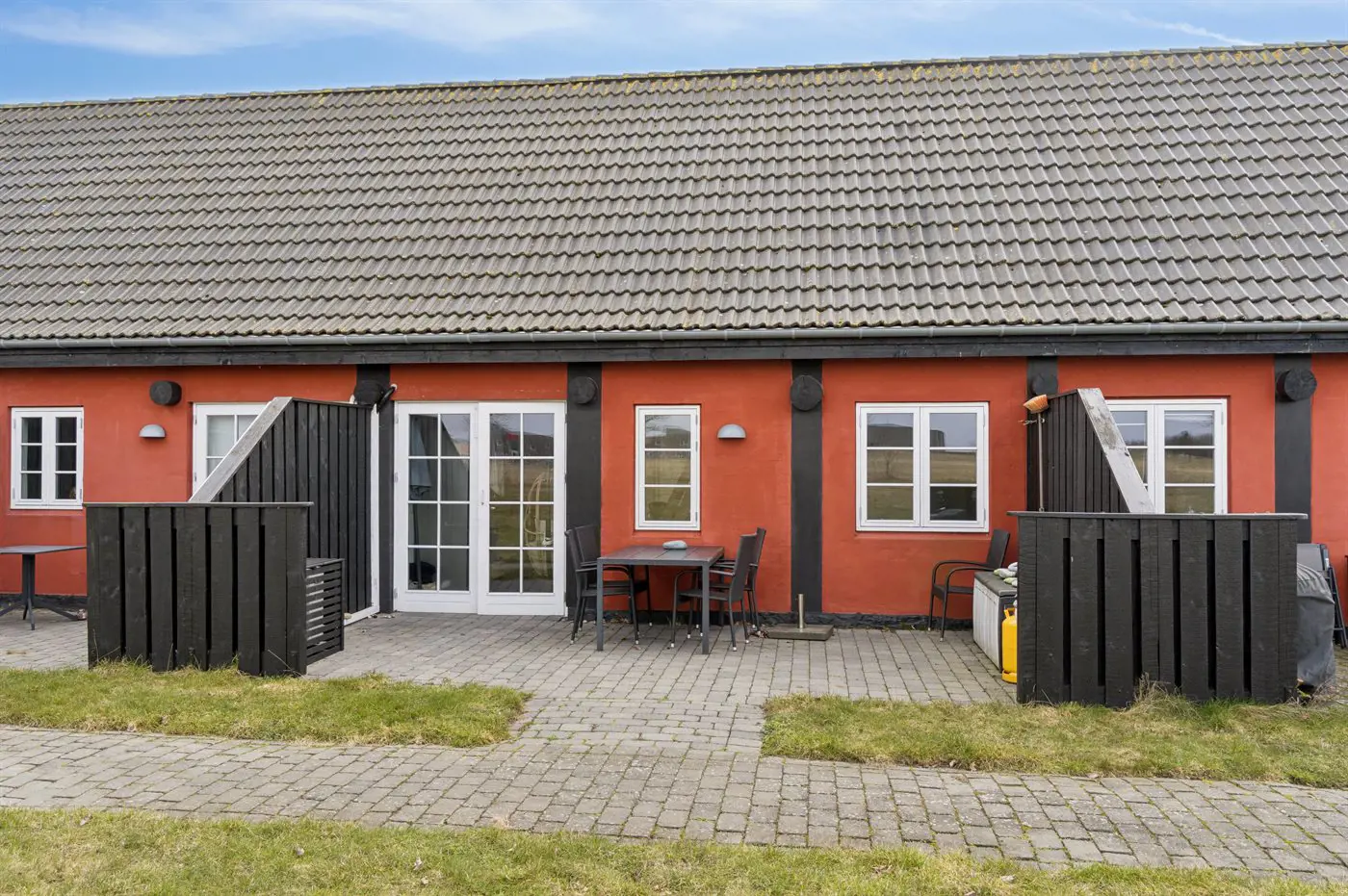 Eine helle und einladende Ferienwohnung in Dams på Bakken. Zur Wohnung gehören eine Holzterrasse mit Blick auf den stimmungsvollen Innenhof sowie eine schöne Nachmittagsterrasse mit Blick auf grüne Flächen in Richtung NaturBornholm.