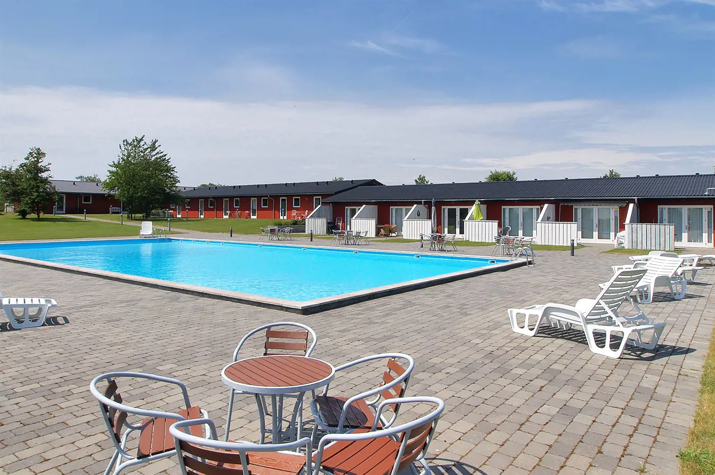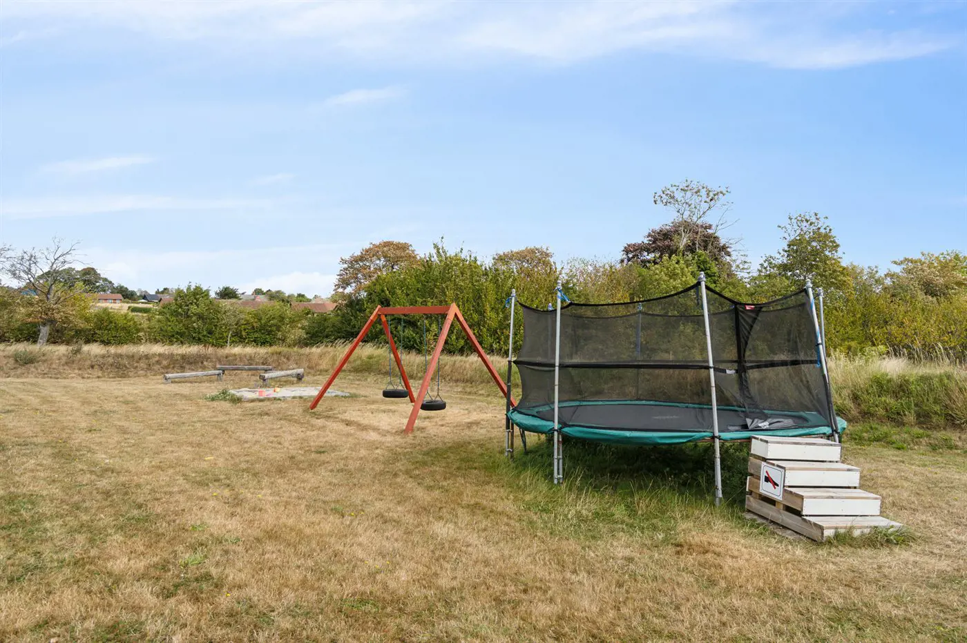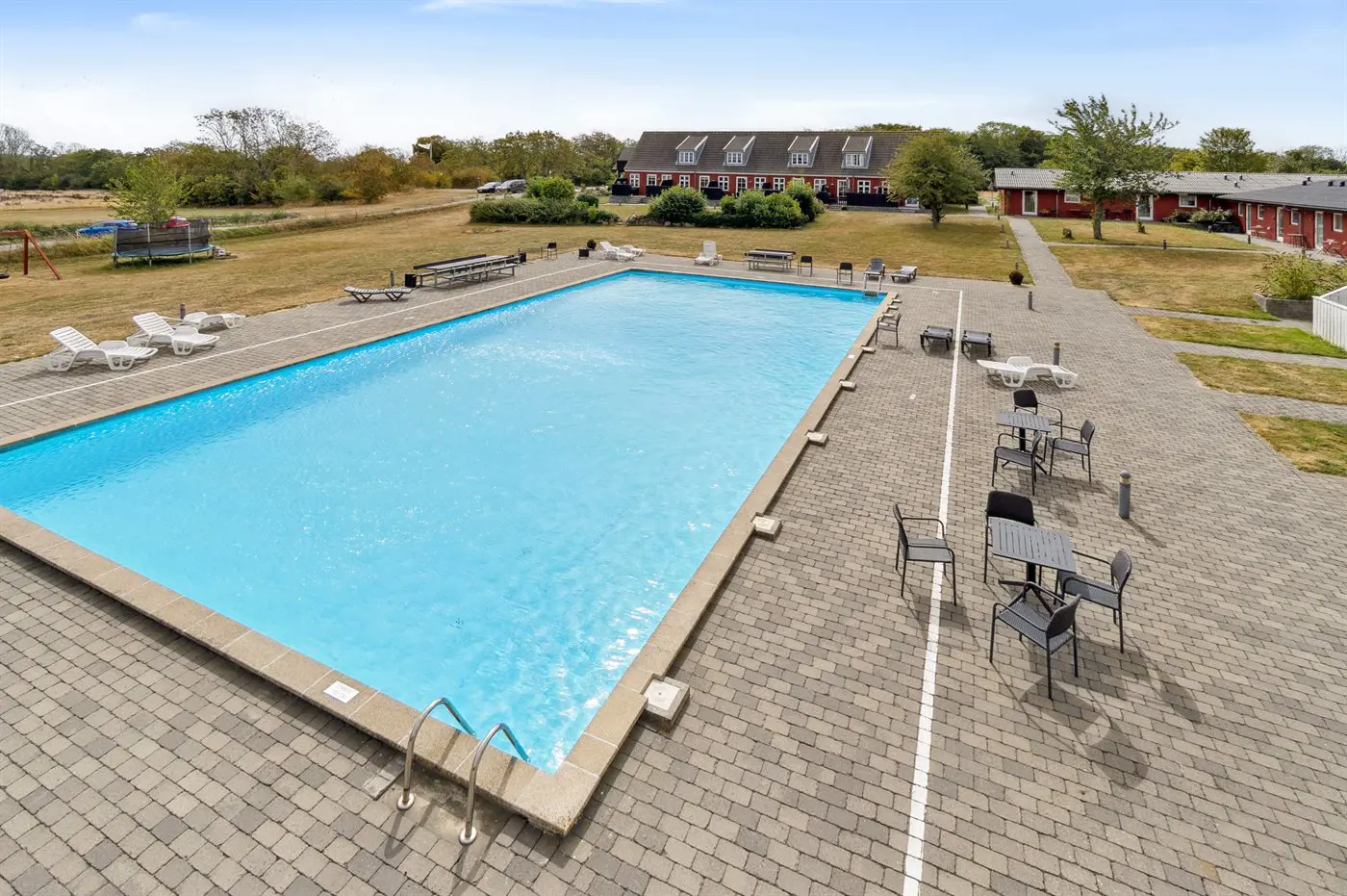 Die Ausstattung (gemeinsame Nutzung) steht dir zur Verfügung – beheizter Außenpool, Bouleplatz, Trampolin u. v. m.