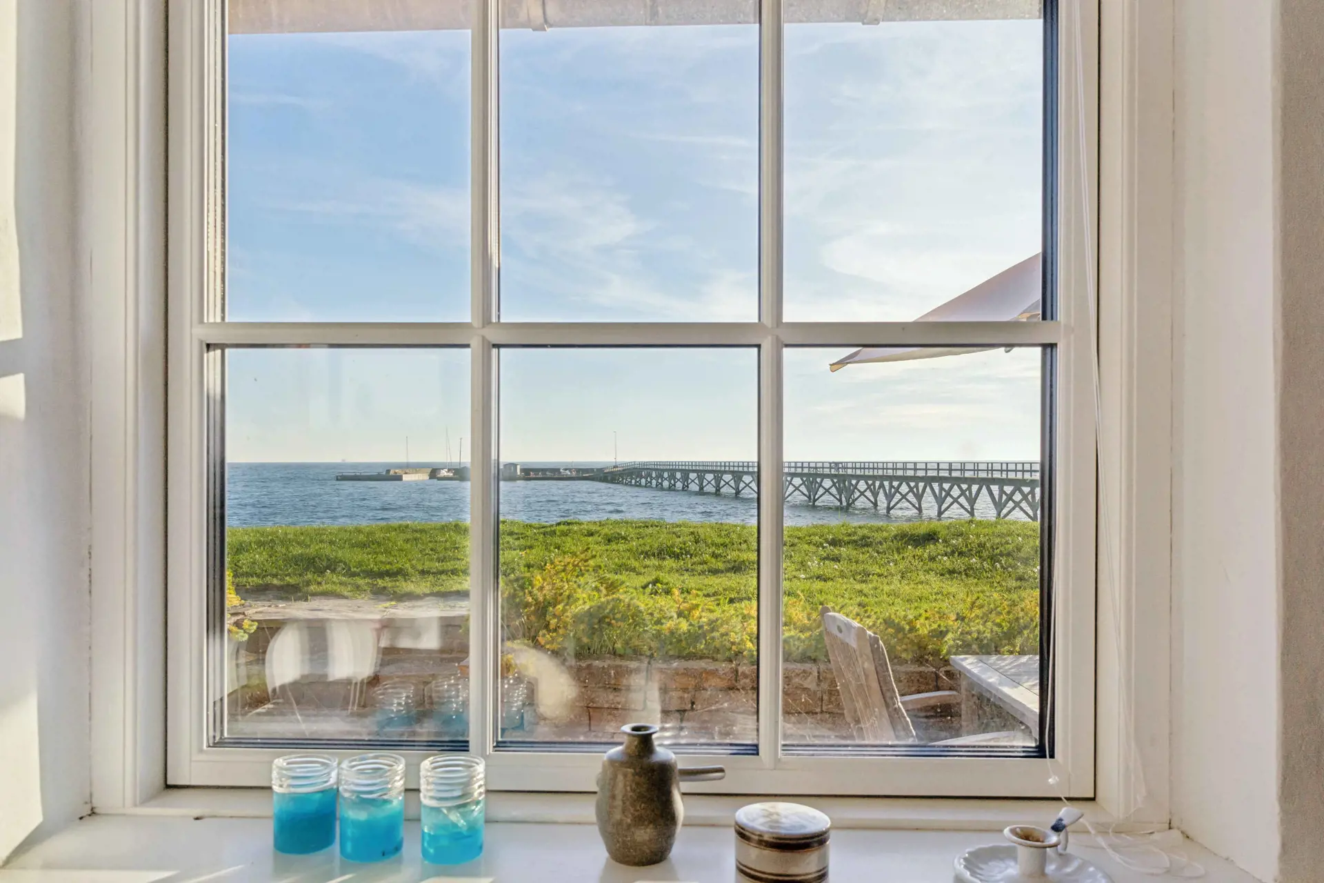 Die funktionale Einrichtung lädt nach einem Tag am Wasser zur Erholung ein. Große Fenster bringen Licht in die Räume und bieten Meerblick. Das Haus eignet sich für Familien und kleine Gruppen, die eine ruhige Basis suchen.