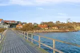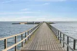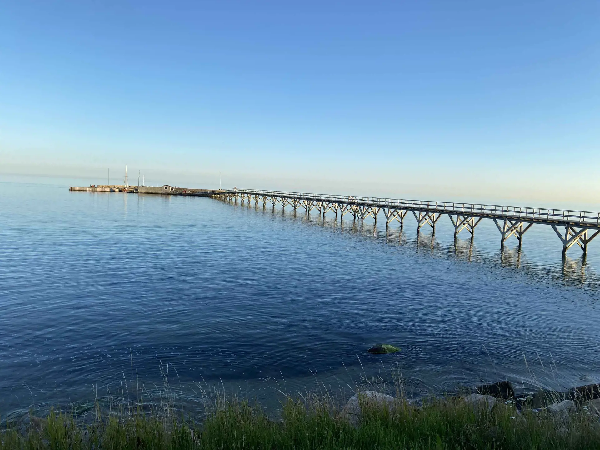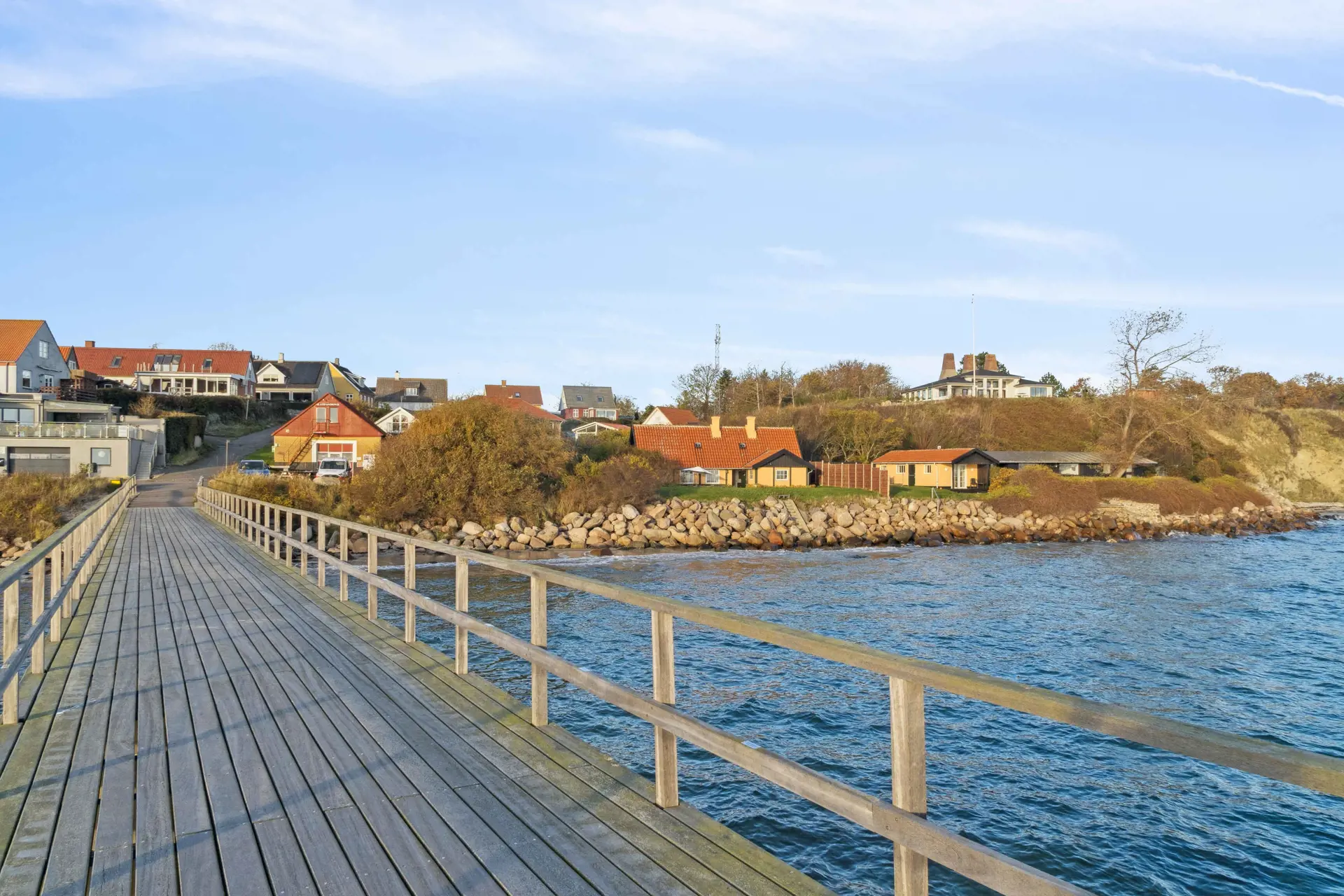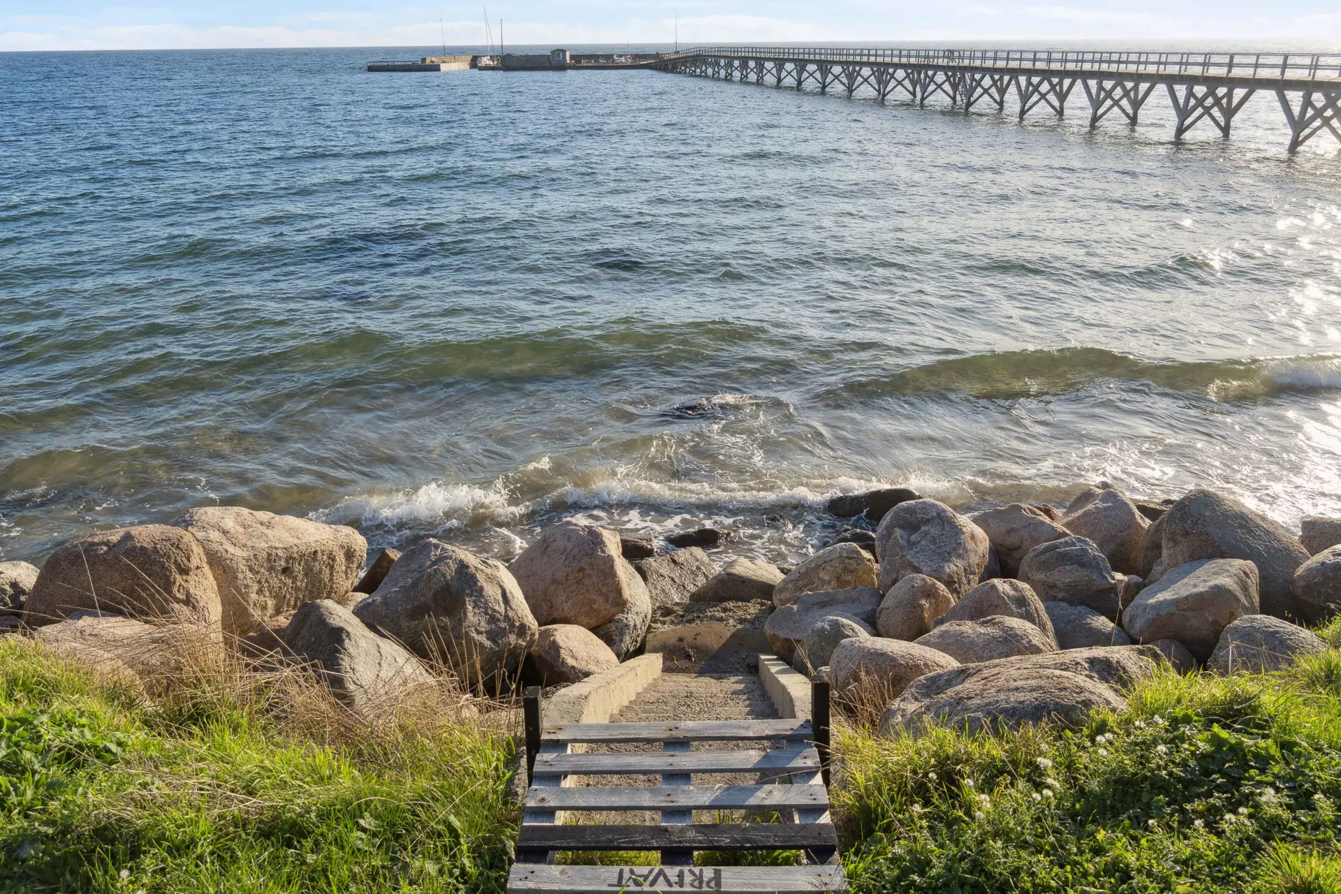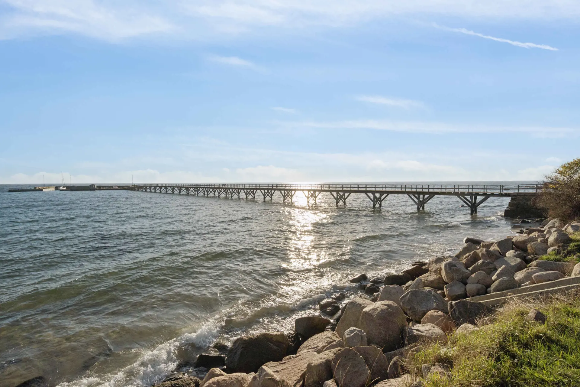 Der Strand am Brückenfuß ist familienfreundlich und ideal zum Baden. Die Küste lädt zu Wanderungen und Radtouren durch die typische Landschaft Süd-Bornholms ein. In der Nähe liegen Arnager Gamle Røgeri, lokale Wege und eine lebendige maritime Umgebung.