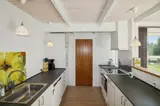 Die Küche ist mit Kühlschrank ausgestattet. Außerdem gibt es 4 Keramik-Kochfelder, Umluftofen, Mikrowelle sowie Geschirrspüler.