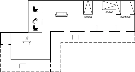 Das Ferienhaus eignet sich für 6 Personen. Die Ferienunterkunft hat eine Wohnfläche von 95 m² und wurde 1951 gebaut. 2023 wurde die Ferienunterkunft renoviert. Haustiere dürfen nicht mitgebracht werden. Das Ferienhaus wird mit Fernwärme beheizt. Fußbodenheizung im Wohnzimmer. Tiefkühlmöglichkeit mit 90 Liter Nutzinhalt.