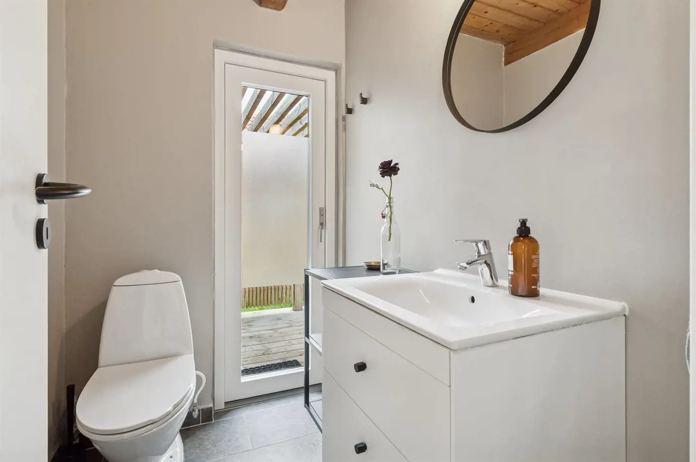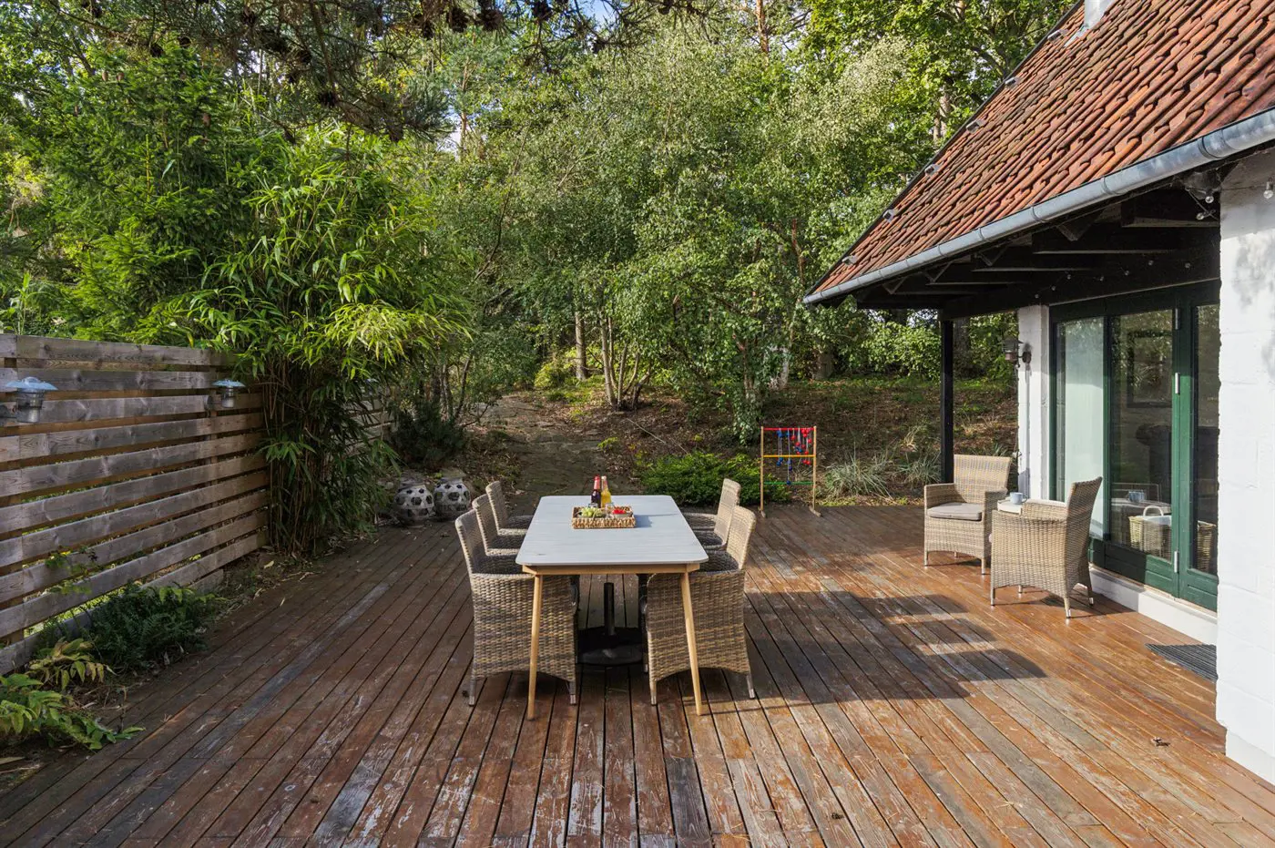Eine große, teilweise überdachte Holzterrasse umgibt das Haus und bietet Euch die Möglichkeit, die sommerliche Wärme zu genießen und gleichzeitig die Familie mittags oder abends beim Grillen zu versammeln. Das große, helle Wohnzimmer ist mit der Küche kombiniert, die mit allem ausgestattet ist, was Ihr braucht, um die Ferienmahlzeiten zuzubereiten. Ein Badezimmer mit hellen Fliesen liegt neben der Gäste-Toilette, von der Ihr Zugang zur abgeschirmten Außendusche habt.