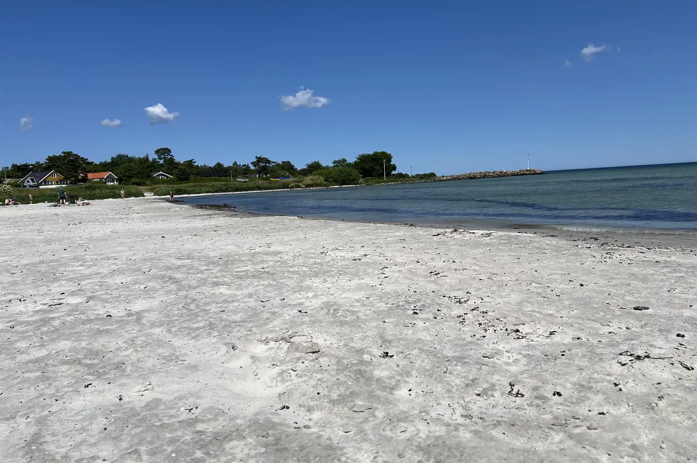 In der Nähe findet Ihr das ehemalige Fischerdorf Snogebæk, das heute ein lebendiger Ort mit vielen Angeboten ist: Cafés, Supermarkt, Räucherei, Restaurants und vieles mehr. Am spannendsten ist es jedoch, über den langen Holzsteg hinaus zur kleinen Insel-Hafenanlage im Meer zu gehen – viele nutzen die Gelegenheit, von der Kaimauer direkt in die Wellen zu springen. Im Sommer pulsiert die Gegend vor Leben und Aktivität.