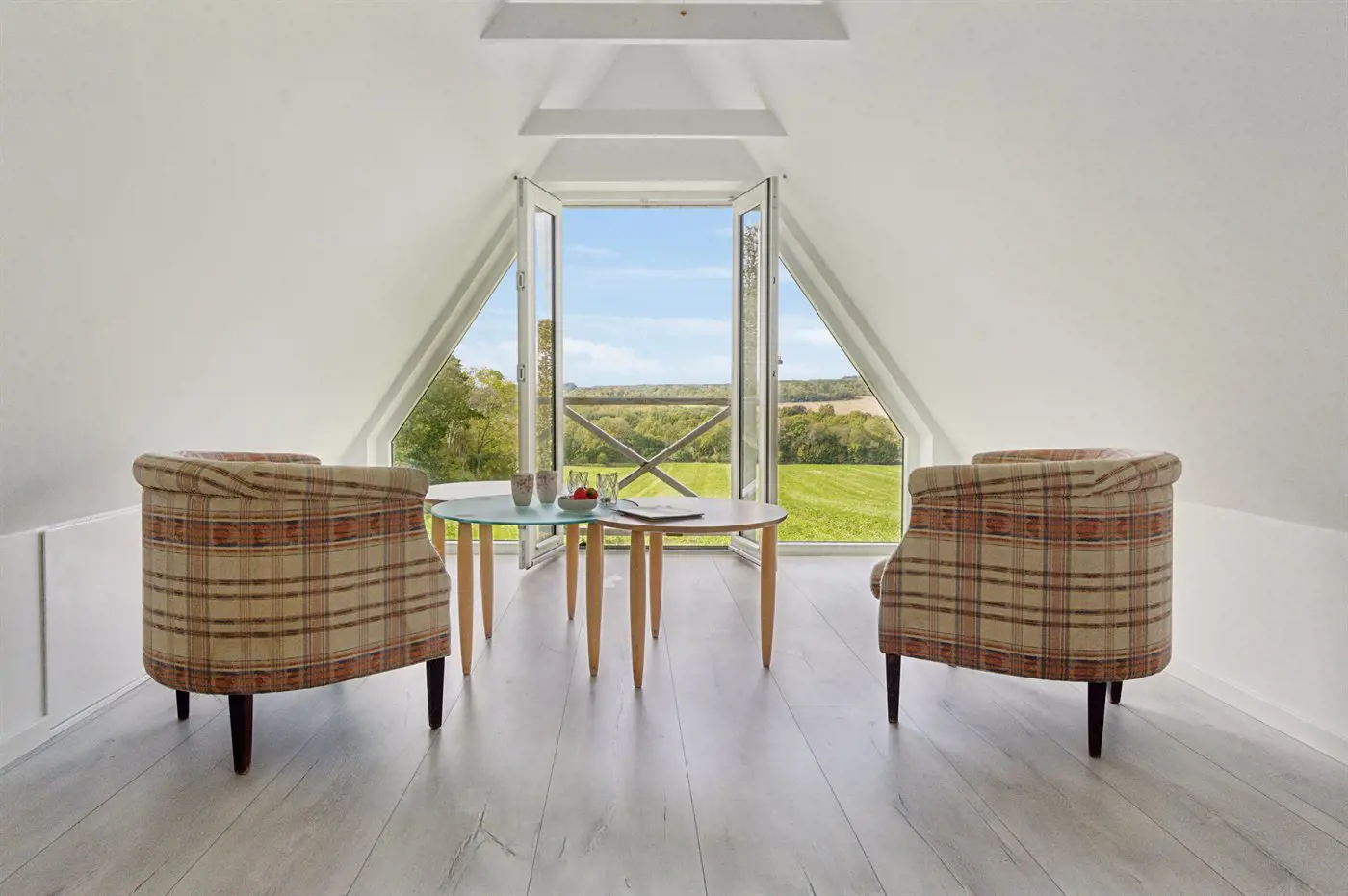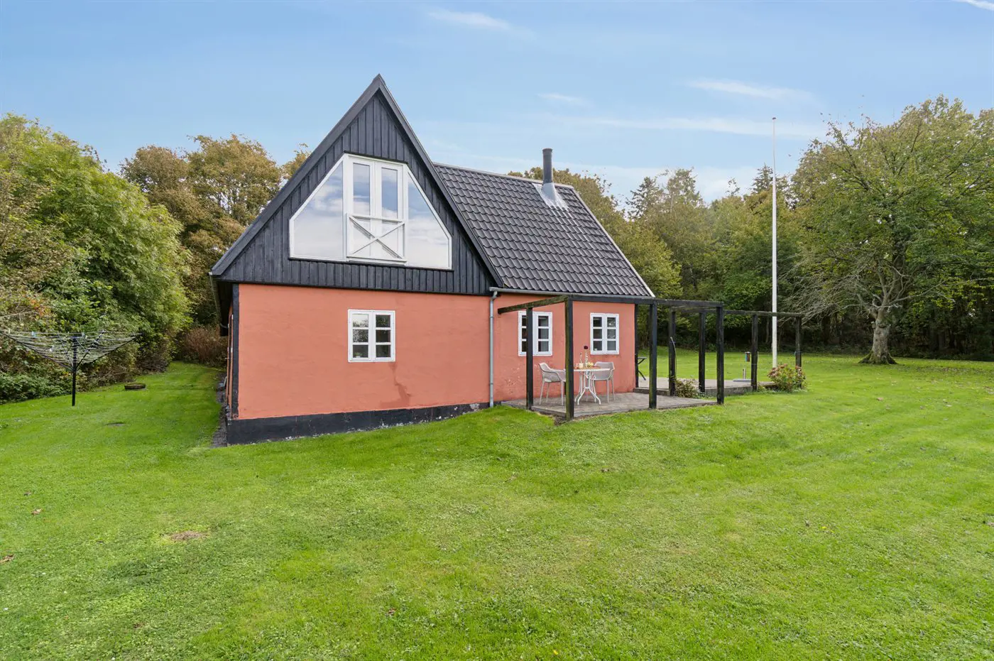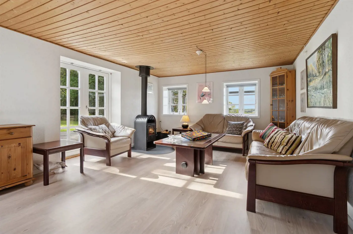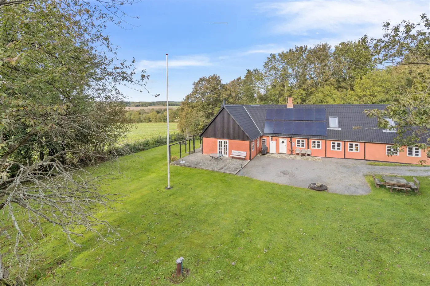 Mit einem herrlichen Blick über die ländliche Umgebung findest du dieses gemütliche und geräumige Ferienhaus auf dem Gipfel des Slamrebjerg – einer Anhöhe außerhalb von Nexø. Das Haus liegt ungestört und ist auf drei Seiten von einem kleinen Wald umgeben. Es gibt eine große Rasenfläche mit viel Platz für Ballspiele und andere Aktivitäten im Freien.