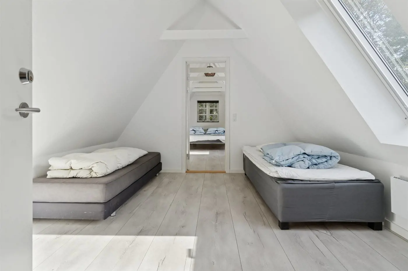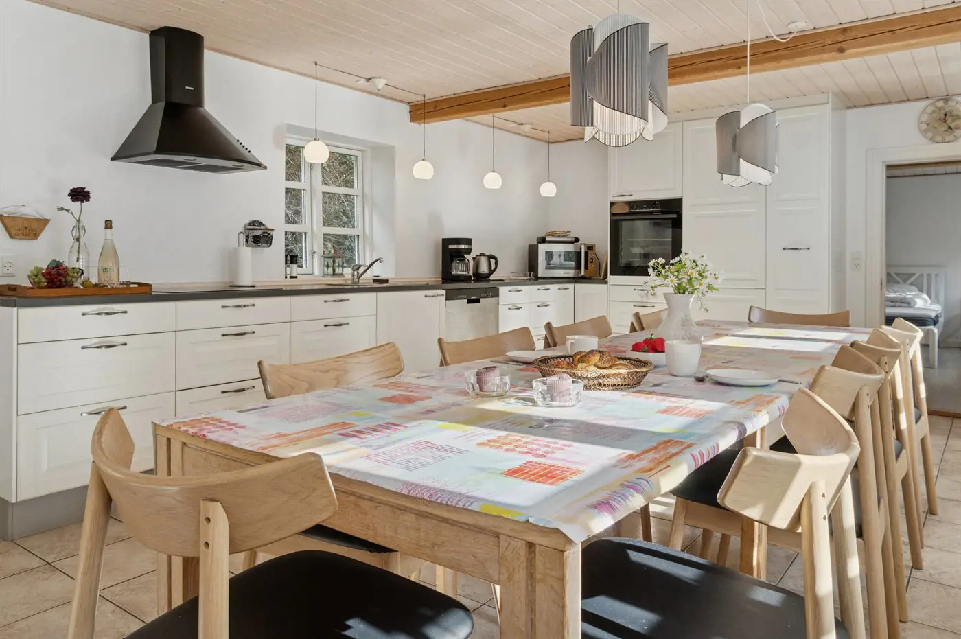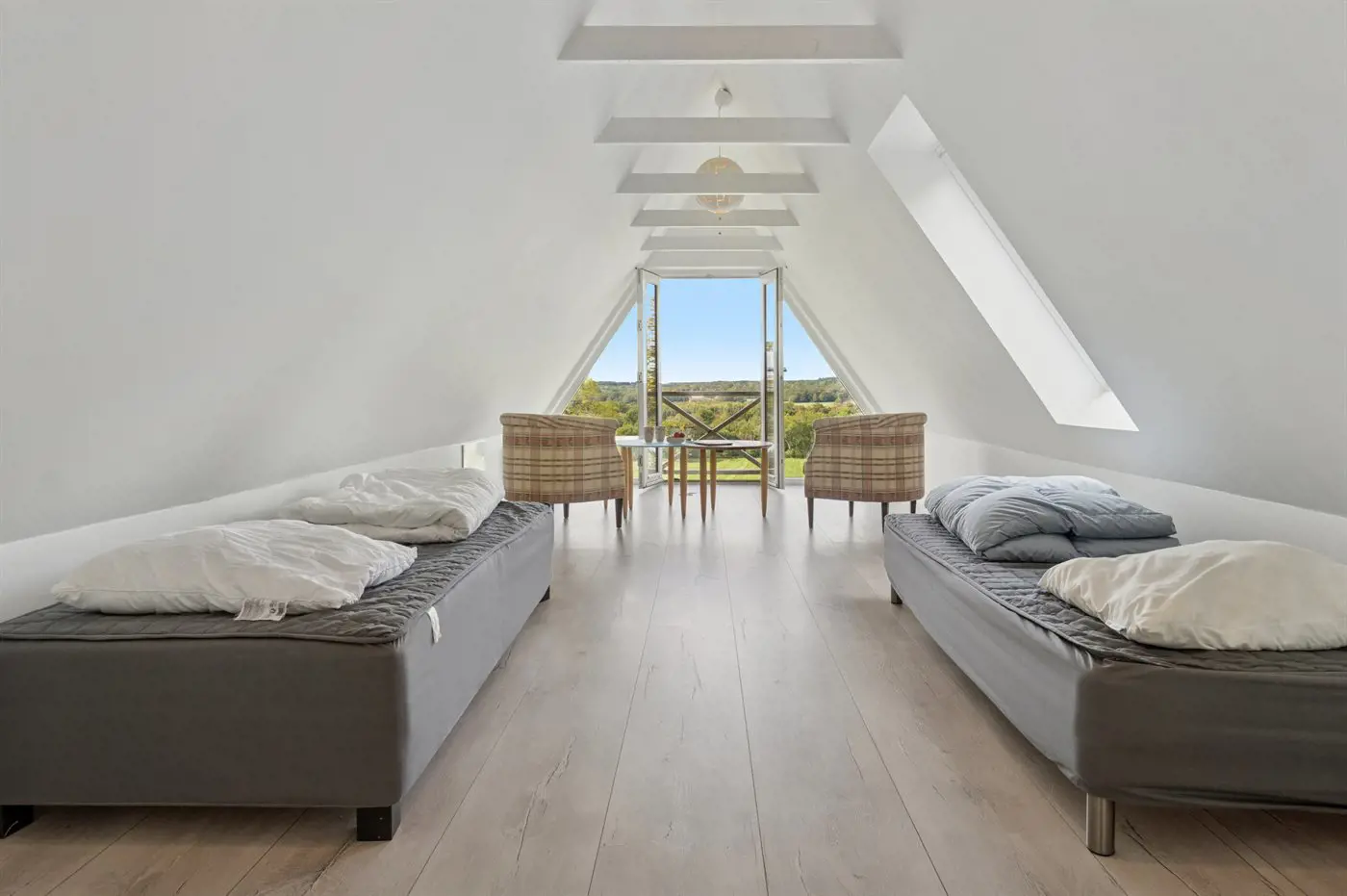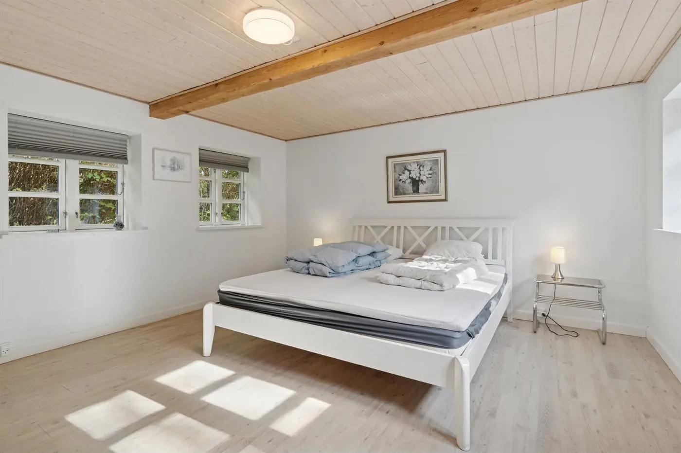 Mit einem herrlichen Blick über die ländliche Umgebung findest du dieses gemütliche und geräumige Ferienhaus auf dem Gipfel des Slamrebjerg – einer Anhöhe außerhalb von Nexø. Das Haus liegt ungestört und ist auf drei Seiten von einem kleinen Wald umgeben. Es gibt eine große Rasenfläche mit viel Platz für Ballspiele und andere Aktivitäten im Freien.