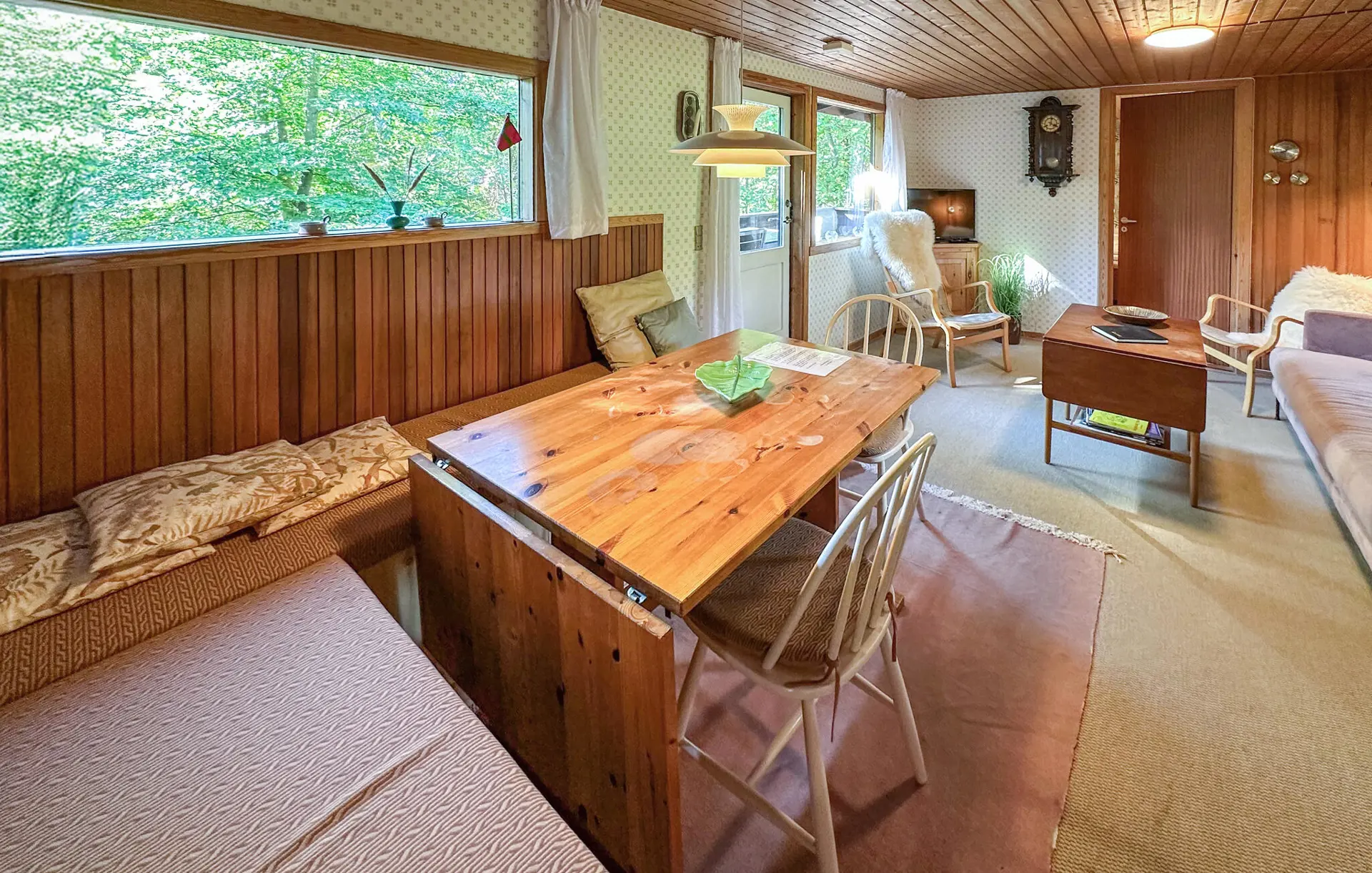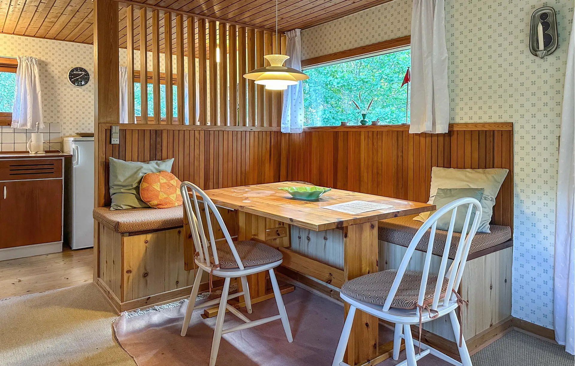 Erleben Sie die ruhige Seite Bornholms in diesem gemütlichen Holzhaus, das von dichten Bäumen umgeben ist. Im Haus spüren Sie sofort den authentischen skandinavischen Charme. Die Einrichtung ist einfach, aber warm und einladend – mit viel Holz, weichen Textilien und liebevollen Details. Machen Sie es sich im Wohnraum gemütlich, lesen Sie ein Buch oder sehen Sie fern, während draußen der Wind durch die Blätter rauscht. Bereiten Sie in der praktischen Küche gemeinsame Mahlzeiten zu und genießen Sie sie am Esstisch in der gemütlichen Sitzecke.
