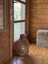 Draußen erwartet Sie der umliegende Wald – ein Paradies für Naturliebhaber. Genießen Sie die Stille, lauschen Sie den Vögeln, gehen Sie morgens zwischen den Bäumen spazieren oder trinken Sie Kaffee auf der Terrasse in völliger Ruhe. Der Weg zum klaren Wasser und dem berühmten Dueodde-Strand mit feinem weißen Sand ist kurz.
