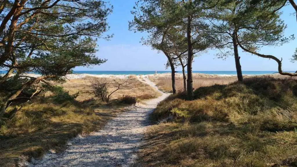 Die Umgebung bietet viele Urlaubserlebnisse. Der Dueodde-Strand ist bekannt für sein weißes, weiches Sand und seichtes Wasser – ideal für Kinder und Erwachsene. Dünen laden zu Spaziergängen ein, und Rad- sowie Wanderwege führen durch Wald und Dünen.