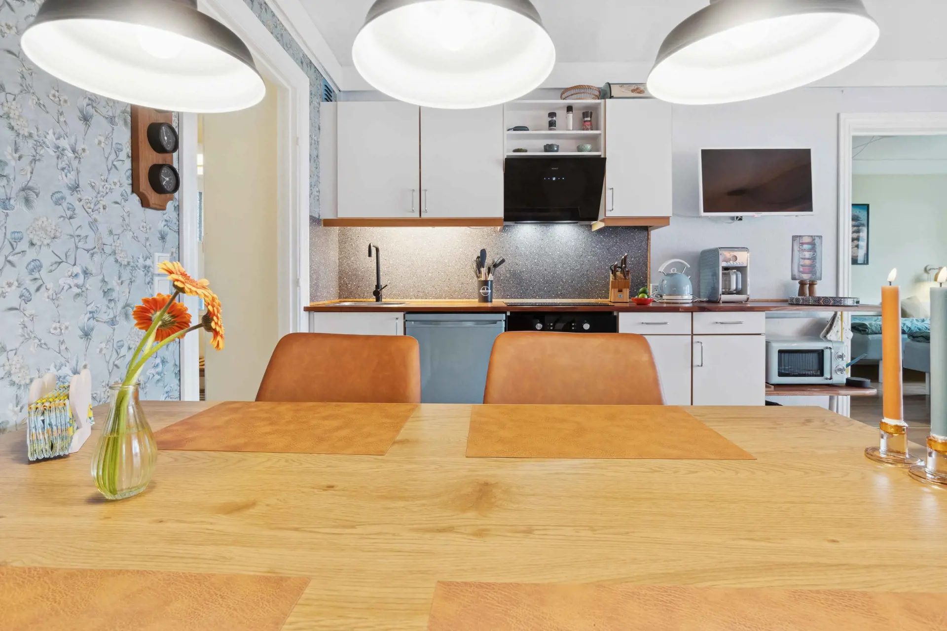 Beginnen Sie den Morgen auf der Terrasse mit frischer Luft und Ruhe. Innen erwartet Sie ein offener Wohnbereich, ideal zum Entspannen nach dem Tag. Die gut ausgestattete Küche ermöglicht es, Mahlzeiten drinnen oder draußen zu genießen.
