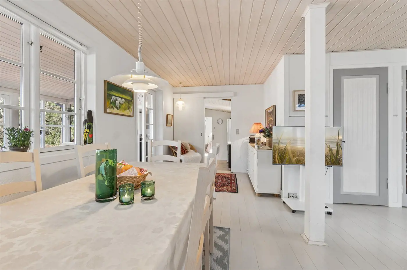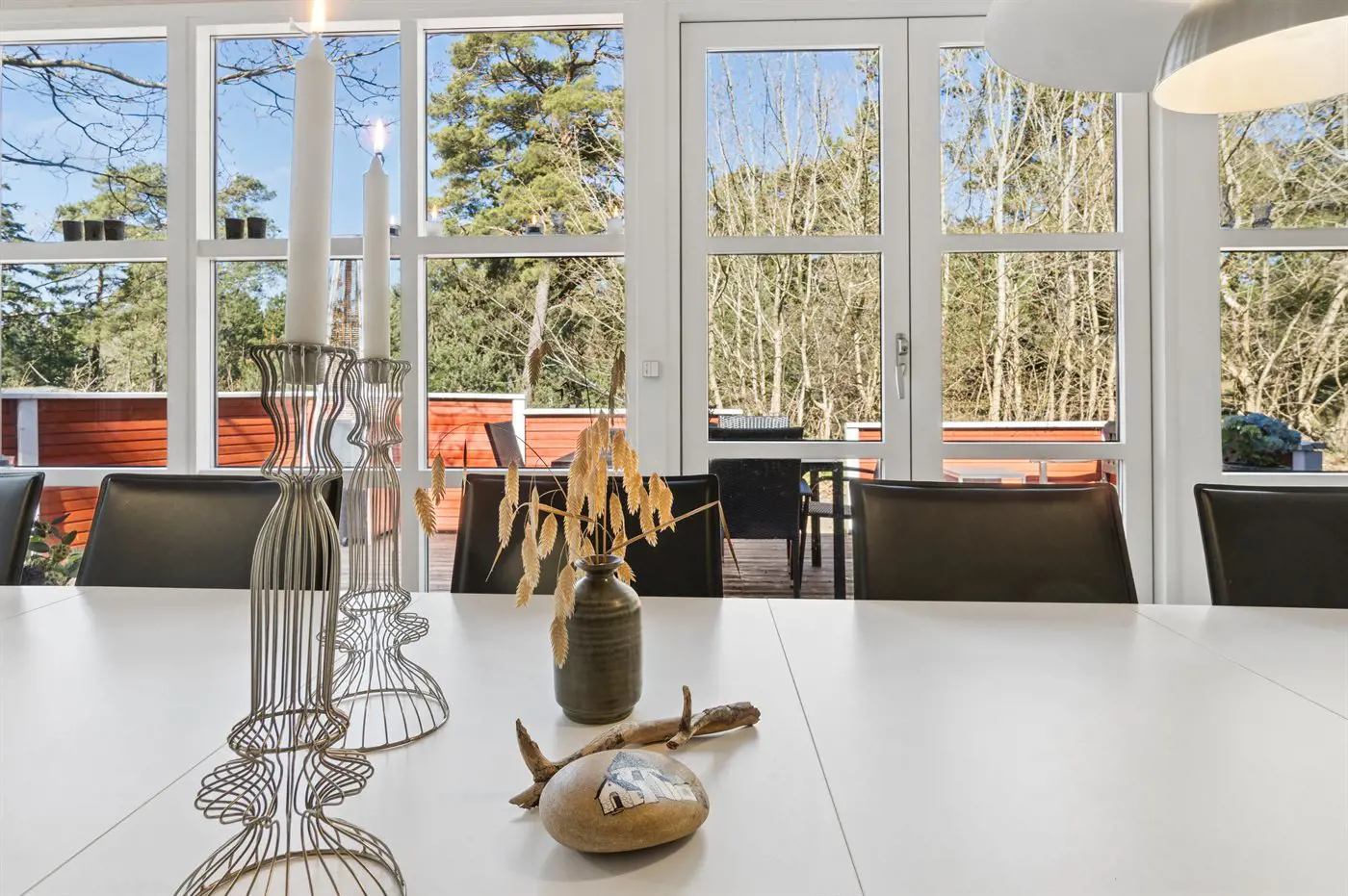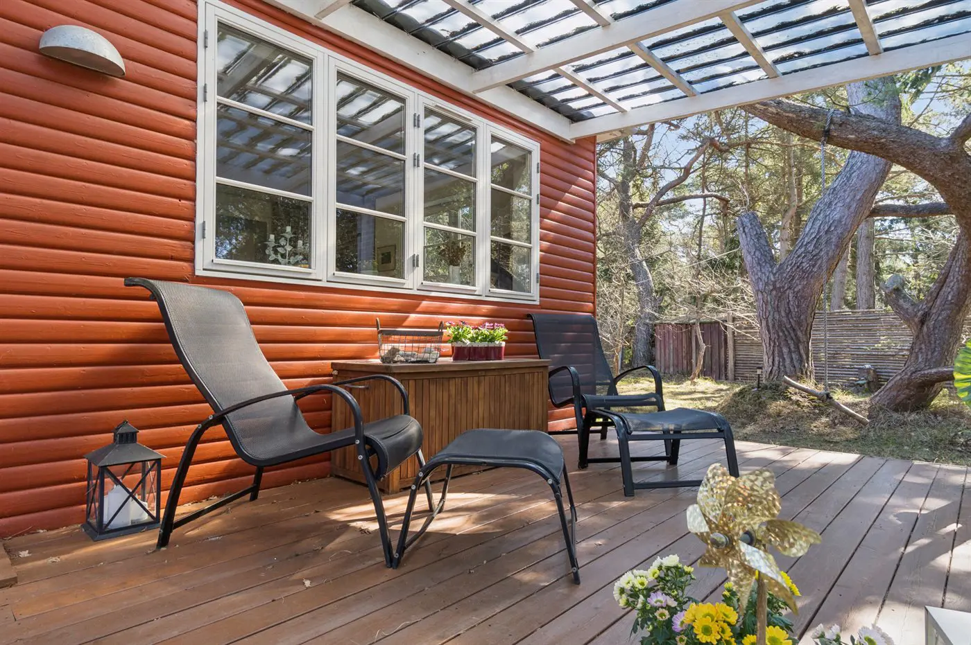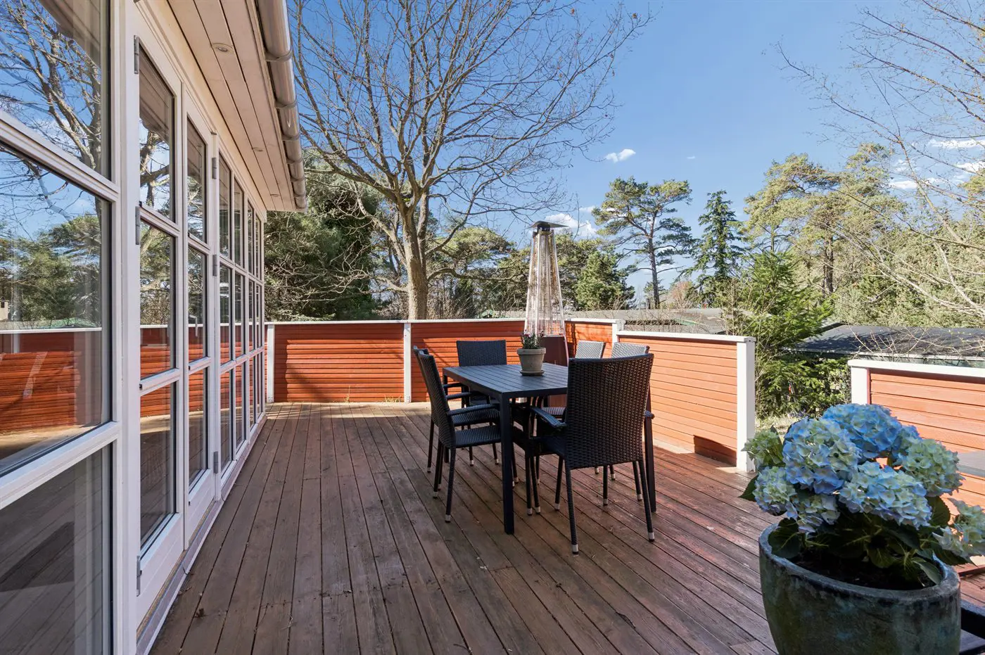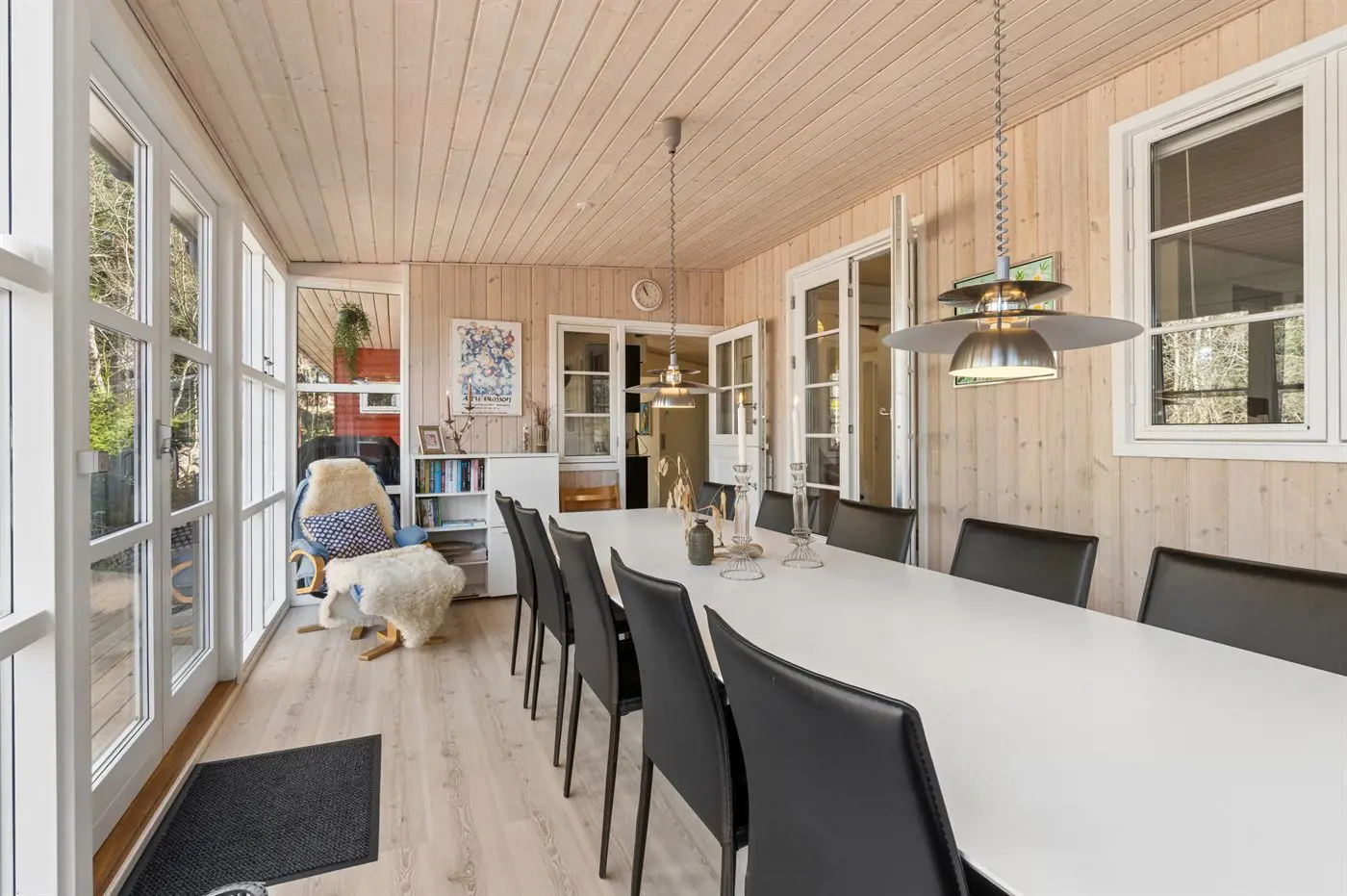 Der Wintergarten ist eine gute Ergänzung zum großzügigen Raumangebot und verlängert die Abende, wenn du die teilweise überdachten Terrassen nicht nutzen möchtest. Die neuere Küche macht die Zubereitung der Mahlzeiten zum Vergnügen, da sie viel Arbeitsfläche und alles bietet, was du brauchst. Ein schönes modernes Badezimmer sowie zwei große Schlafzimmer mit viel Platz und guten Aufbewahrungs-möglichkeiten runden das Ganze ab. Im gemütlichen Wohnzimmer kannst du den Abend mit einem Feuer im Kaminofen und in guter Gesellschaft genießen.