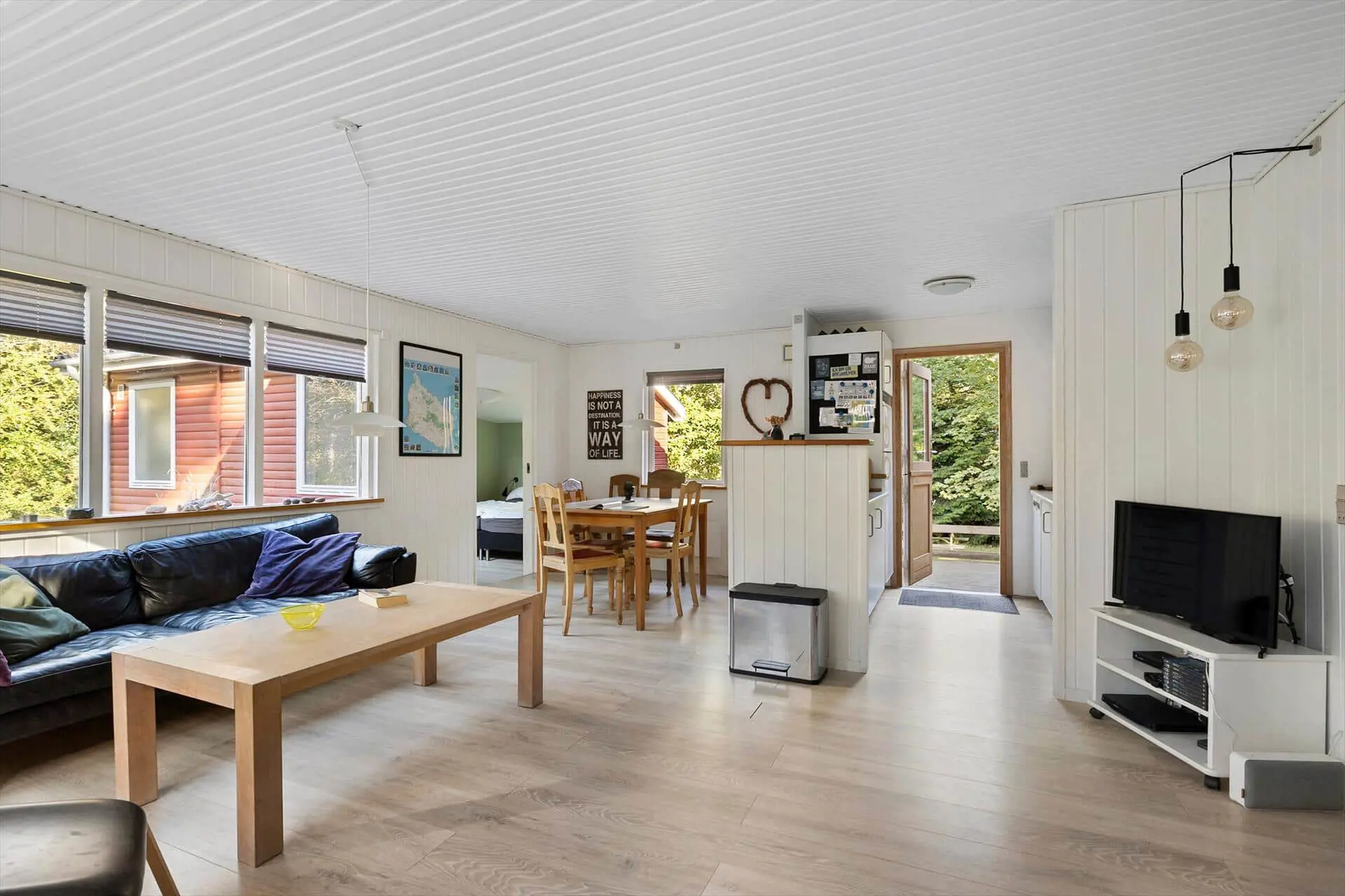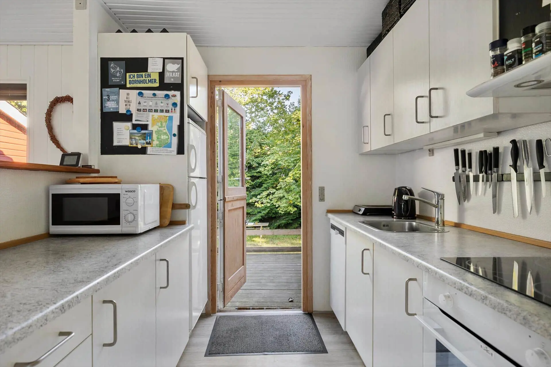 Die Lage in Snogebæk macht dieses Ferienhaus zu etwas ganz Besonderem. Du wohnst nur wenige Gehminuten von einem der kinderfreundlichsten Sandstrände Bornholms entfernt – mit flachem Wasser und weichem Sand, ideal für kleine und große Badegäste. Sandburgen bauen, Strandspiele und erfrischende Bäder sind direkt vor der Tür – du kannst den Sand fast schon zwischen den Zehen spüren. Auch das charmante Küstendorf Snogebæk ist nur einen kurzen Spaziergang entfernt. Hier findest du ein gemütliches Räucherei-Restaurant, kleine Cafés und Geschäfte mit bornholmer Spezialitäten, Kunsthandwerk und frischem Brot. Auf dem Sommermarkt kannst du regionale Produkte kaufen, mit den Einheimischen ins Gespräch kommen und das echte Bornholm erleben. Rad- und Wanderwege führen durch Wälder, Dünen und entlang der Küste – so erreichst du bequem auch Dueodde oder Nexø. In deinem Ferienzuhause bist du mittendrin in Strand, Natur und Kultur – die perfekte Basis für einen echten Bornholm-Urlaub.