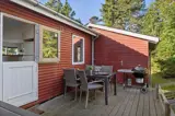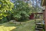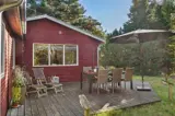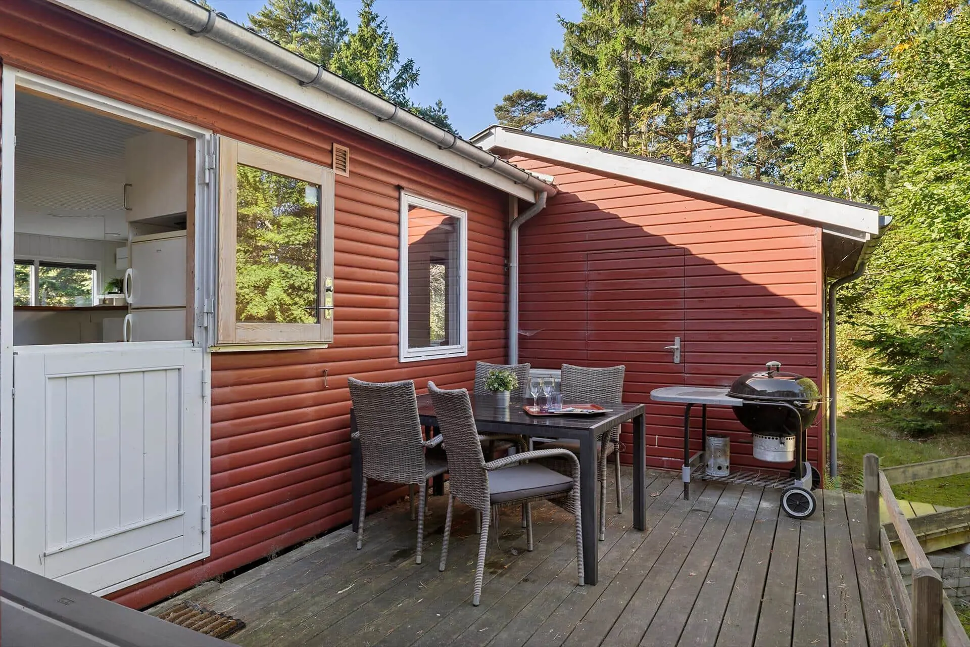 Tritt hinaus auf die große Terrasse und spüre, wie sich die Ruhe über dich legt – hier beginnt der Tag am besten mit frisch gebrühtem Kaffee unter freiem Himmel, begleitet vom Duft des Waldes und einem Hauch Meeresluft. Das gemütliche Naturgrundstück rund um das Haus lässt dich mitten in der bornholmer Landschaft ankommen, wo Vogelgesang und Kiefernduft sich mit dem Lachen der spielenden Kinder vermischen. Auf der Terrasse findest du bequeme Gartenmöbel und einen Grill – der perfekte Ort für lange Sommerabende mit leckeren Speisen vom Feuer und guter Gesellschaft. Wenn die Sonne langsam hinter den Bäumen untergeht und alles in goldenes Licht taucht, wird die Terrasse zum magischen Ort. Wickel dich in eine Decke, schau in den Sternenhimmel und lausche der stillen Natur. Ob Spiel, Entspannung oder einfach das Sein – hier findest du Raum für alles.