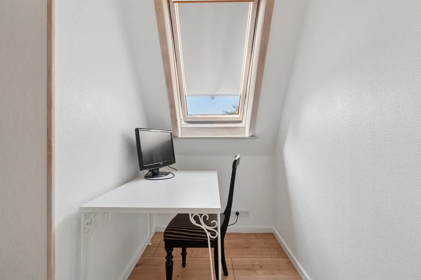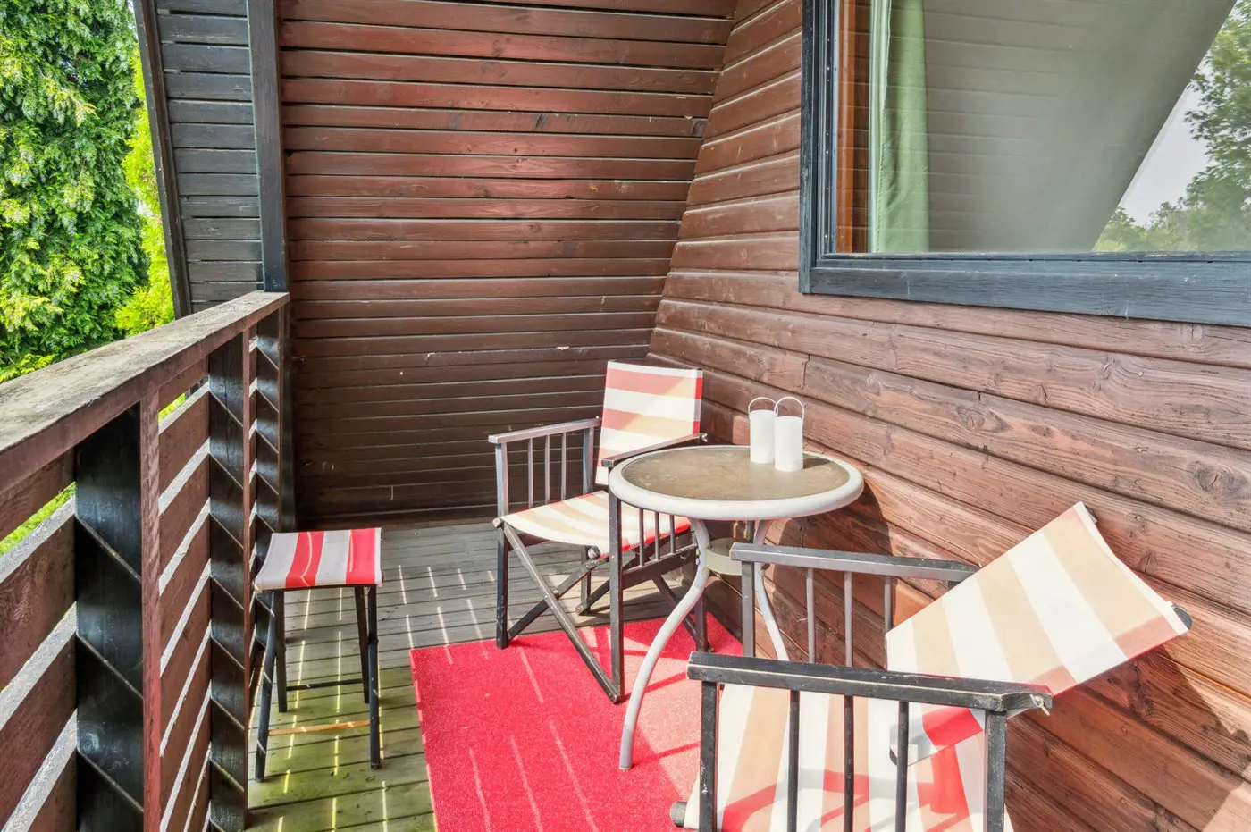 Im Obergeschoss gelangst du vom südlich gelegenen Schlafzimmer auf einen kleinen, gemütlichen Balkon, auf dem du morgens in Ruhe deinen Kaffee genießen kannst.