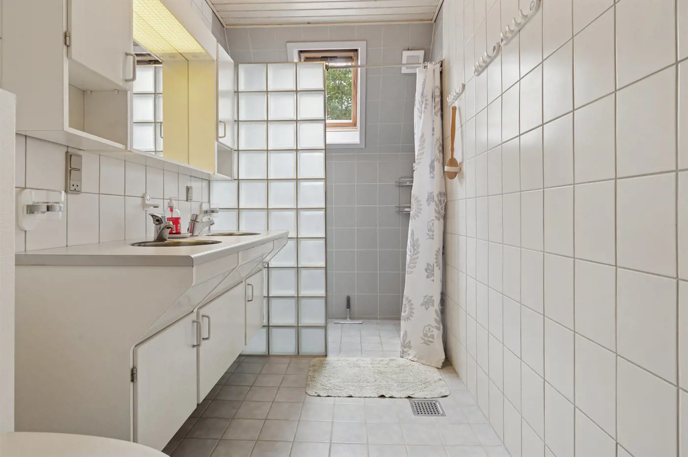 Es gibt 1 Badezimmer mit Duschnische und 2 Toiletten, davon 1 Gästetoilette. Fußbodenheizung in 1 Badezimmer.