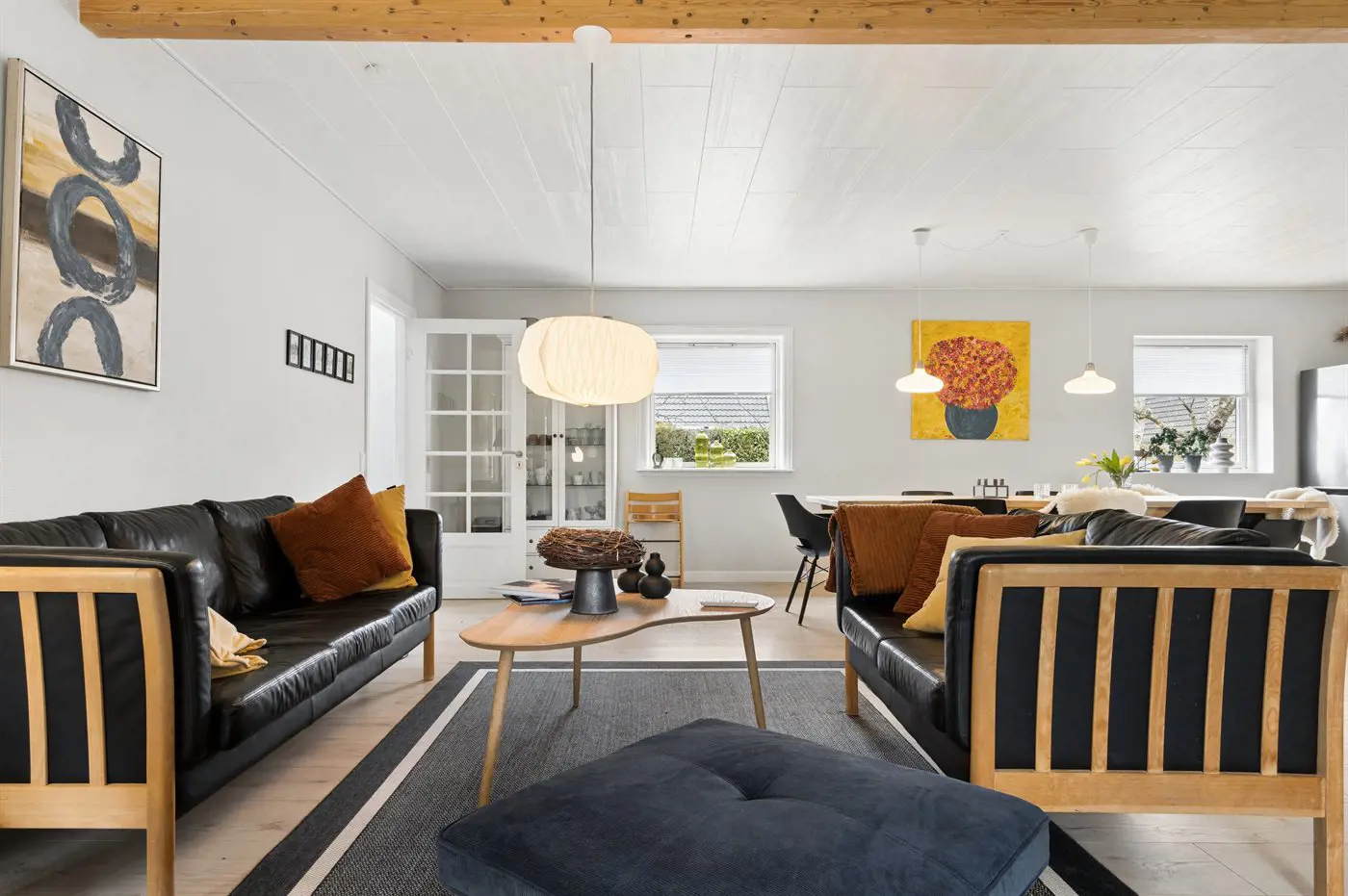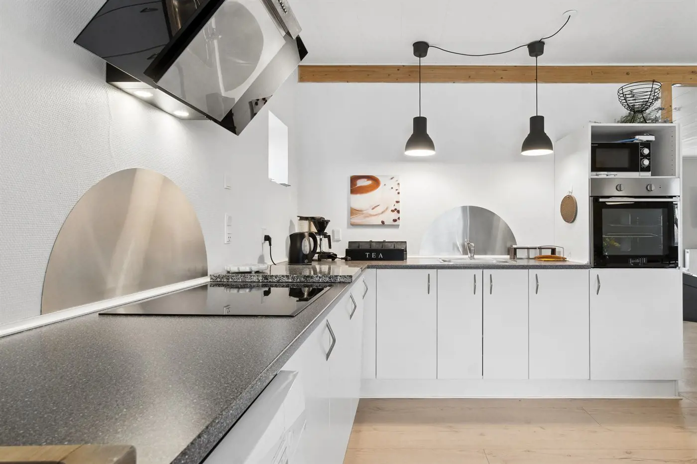 Das Ferienhaus ist über 2 Etagen gut eingerichtet und nach der Modernisierung 2016 präsentiert sich das Interieur einladend, hell und modern, mit einem größeren Küchenbereich. Helles Badezimmer und Gäste-Toilette. Großes, gemütliches Wohnzimmer mit Panoramafenstern und direktem Zugang zur teilweisen überdachten Terrasse, auf der man die Sonne, die Natur genießen und insgesamt gemeinsam Zeit verbringen kann – für Groß und Klein.