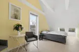 Die Schlafplätze verteilen sich auf 4 Schlafräume. 6 Schlafplätze in Doppelbetten. 2 Schlafplätze in einem Etagenbett. Ferner steht ein Kinderbett zur Verfügung.
