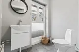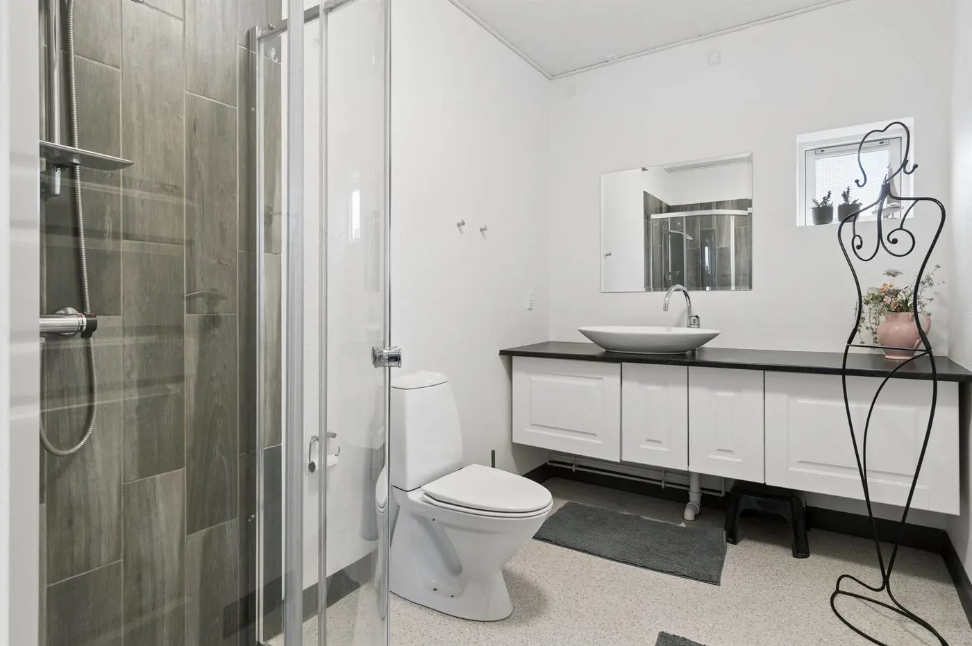 Es gibt 1 Badezimmer mit Duschnische und 2 Toiletten, davon 1 Gästetoilette. Fußbodenheizung in 1 Badezimmer.