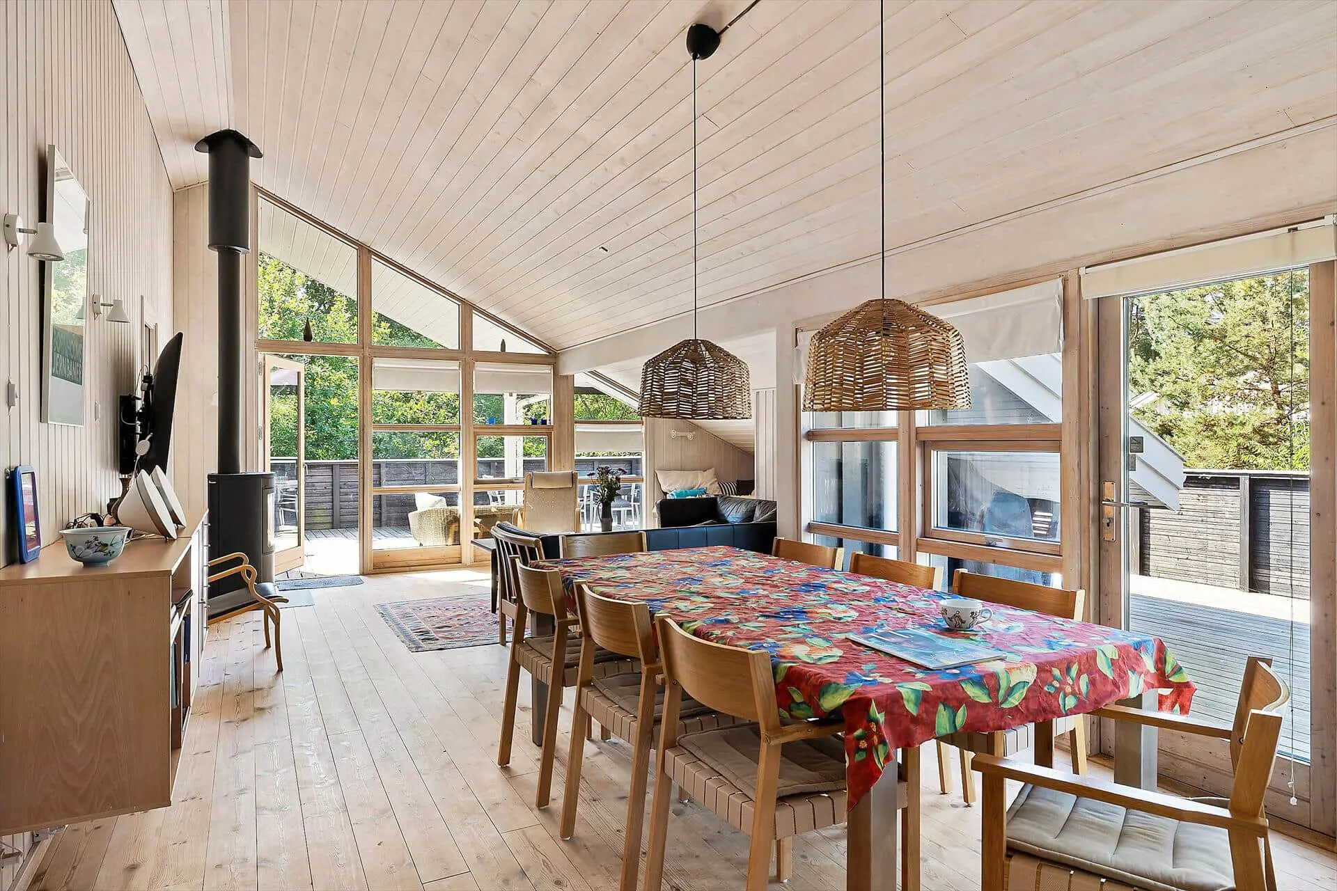 Das Haus liegt in einer Sackgasse und die Natur beginnt direkt vor der Tür – hier hast du gute Chancen, Hasen, Kaninchen und Rehe zu sehen. Den Ausblick auf die Natur kannst du von der großen, teilweise überdachten Terrasse mit schönen Gartenmöbeln und Grill genießen. Die Terrasse lädt dazu ein, die Sonne den ganzen Tag über zu genießen, und ein Spaziergang zum fast „privaten“ Strand ist sehr zu empfehlen. Das Grundstück bietet den Kindern viel Platz zum Spielen – ohne Verkehr und ganz sicher. Dein Auto kannst du direkt am Haus parken, das wie erwähnt in einer sehr ruhigen und abgeschlossenen Straße liegt.