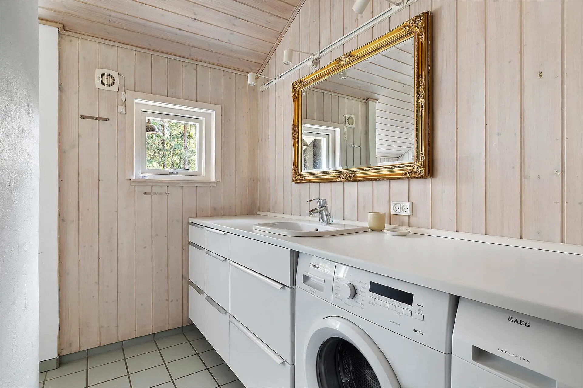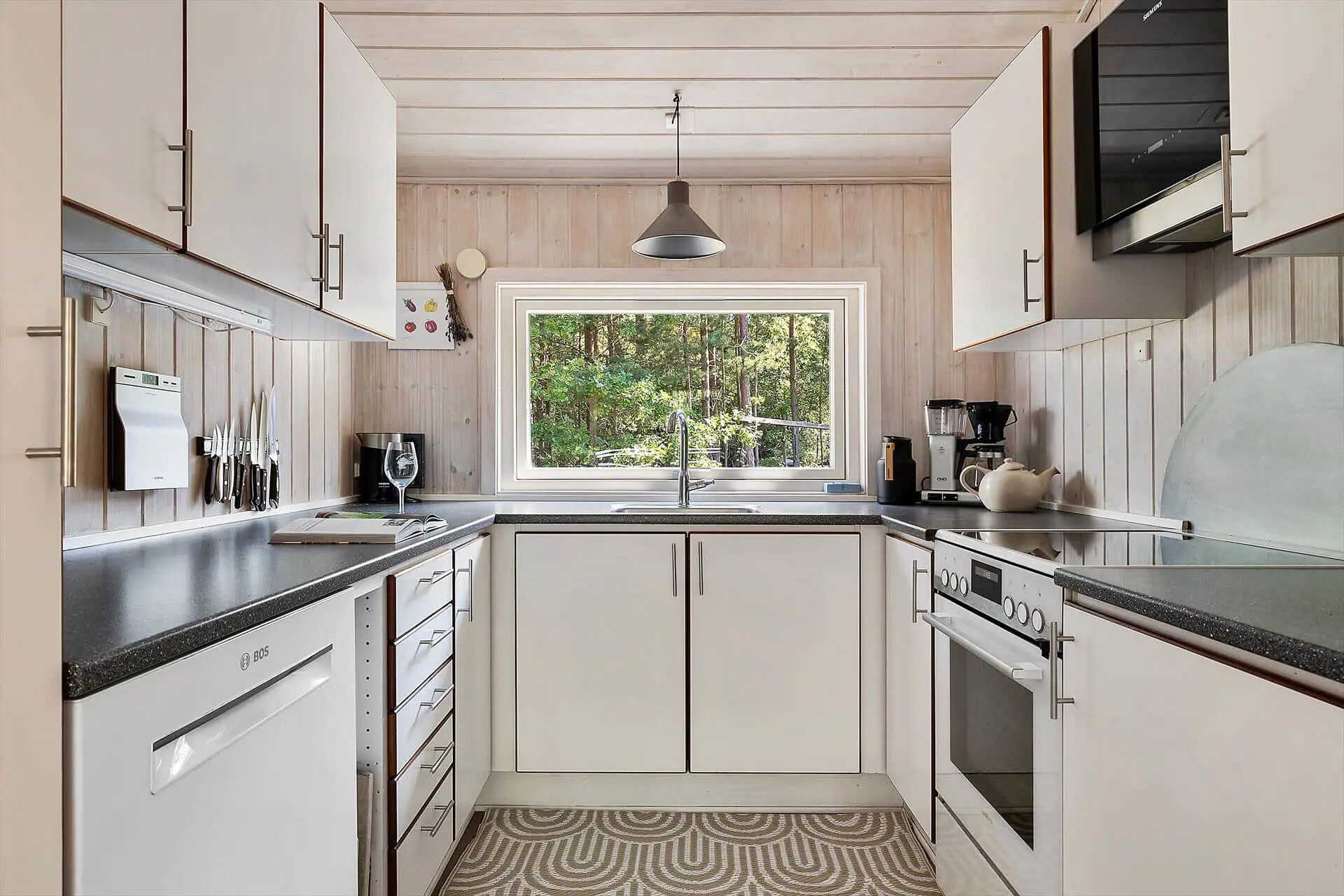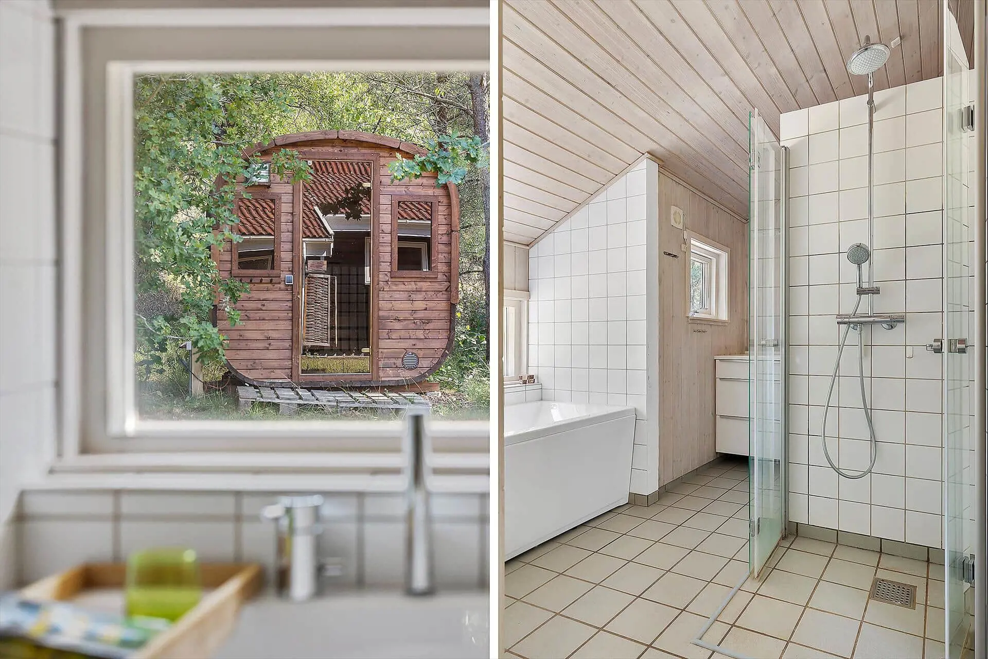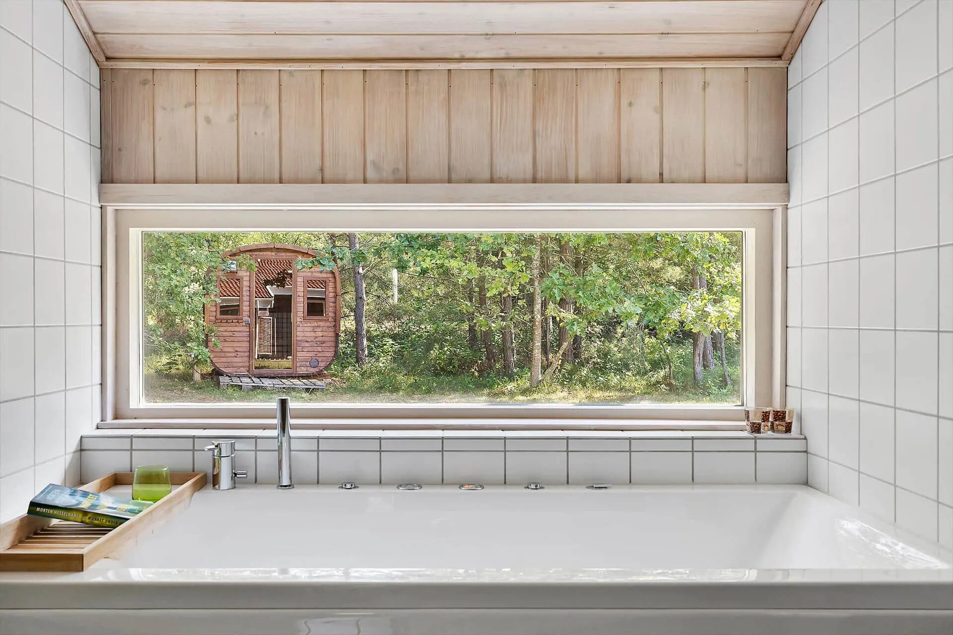 Wunderschönes Ferienhaus mit Platz für die ganze Familie. Das Haus ist mit einer großen, funktionalen Küche ausgestattet, die direkt an das einladende Wohnzimmer mit Essbereich und gemütlichen Sofas angrenzt – mit Blick auf die Natur und Zugang zur fantastischen, teilweise überdachten Terrasse. Im Wohnzimmer gibt es eine gemütliche Alkove, die du entweder als Schlafplatz oder einfach zur Entspannung mitten am Tag nutzen kannst. In der Küche kannst du die Mahlzeiten des Tages zubereiten und trotzdem Teil des Gesprächs im Wohnzimmer bleiben. Das Haus verfügt über vier schöne Schlafzimmer – drei davon mit Doppelbett und eines mit zwei Einzelbetten. An beiden Enden des Hauses befinden sich Badezimmer mit Toilette und Dusche – eines davon zusätzlich mit Whirlpool. Insgesamt ein großartiges Haus mit wunderbarem Komfort und toller Lage – hab einen richtig schönen Urlaub!