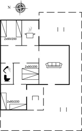 Die Schlafplätze verteilen sich auf 3 Schlafräume. 2 Schlafplätze in einem Doppelbett. 2 Schlafplätze in Einzelbetten.2 Schlafplätze auf Schlafcouchen (einzeln).