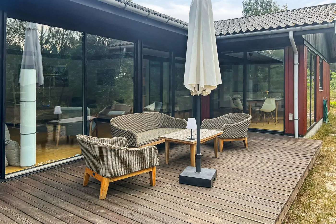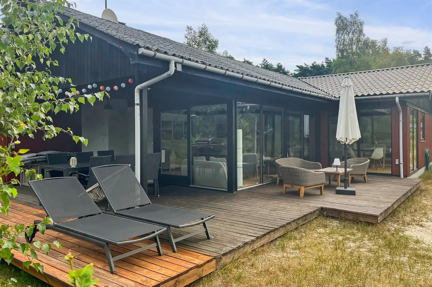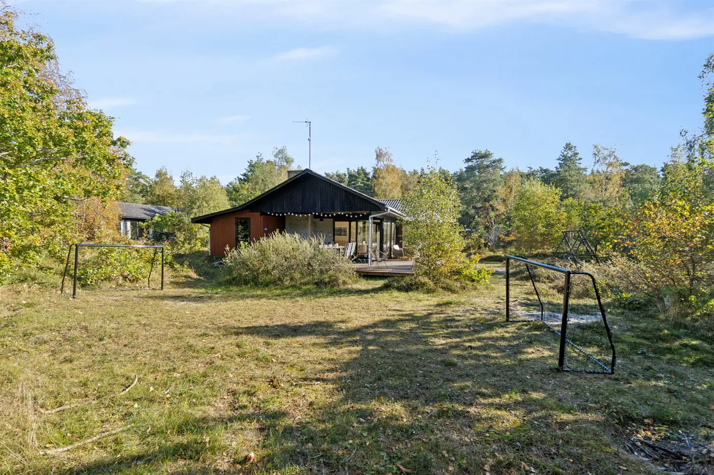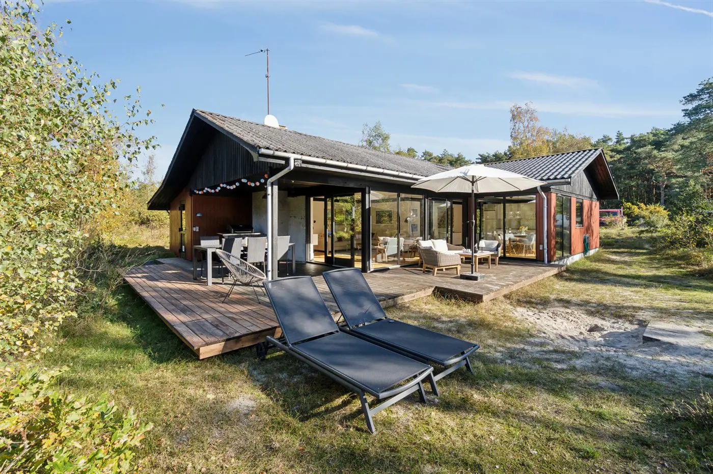 Gut eingerichtetes Ferienhaus in ruhiger Lage in der Nähe des Sandstrandes, wo ein morgendliches Bad einen frischen Start in den Tag ermöglicht. Große Terrassenfenster mit direktem Zugang zur Terrasse sowie ein helles und freundliches Interieur schaffen eine angenehme Urlaubsatmosphäre. Die Sonne, Ruhe und Entspannung auf der teilweise überdachten, nach Süden ausgerichteten Holzterrasse zu genießen, während die Kinder auf dem Naturgrundstück rund um das Haus spielen, kann eine große Freude sein.