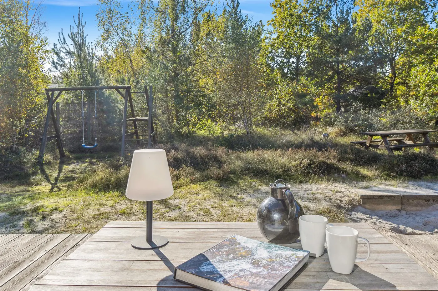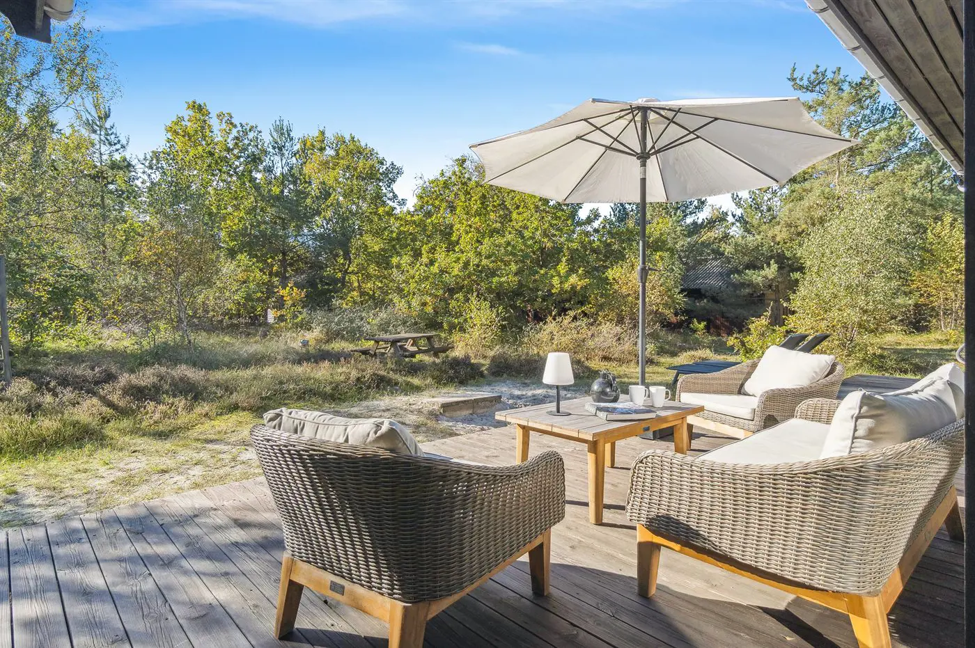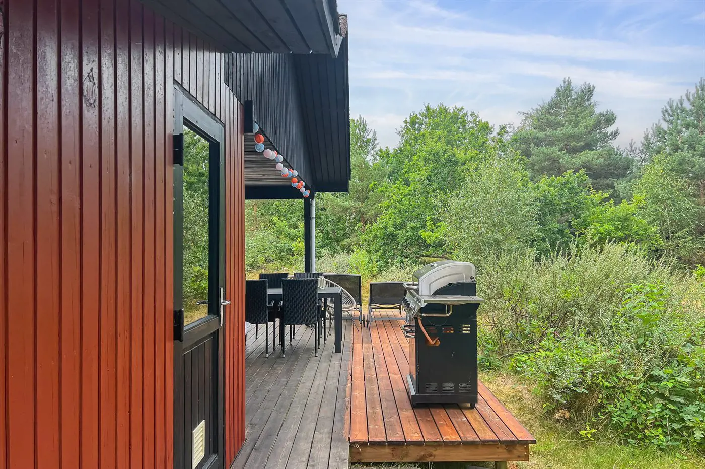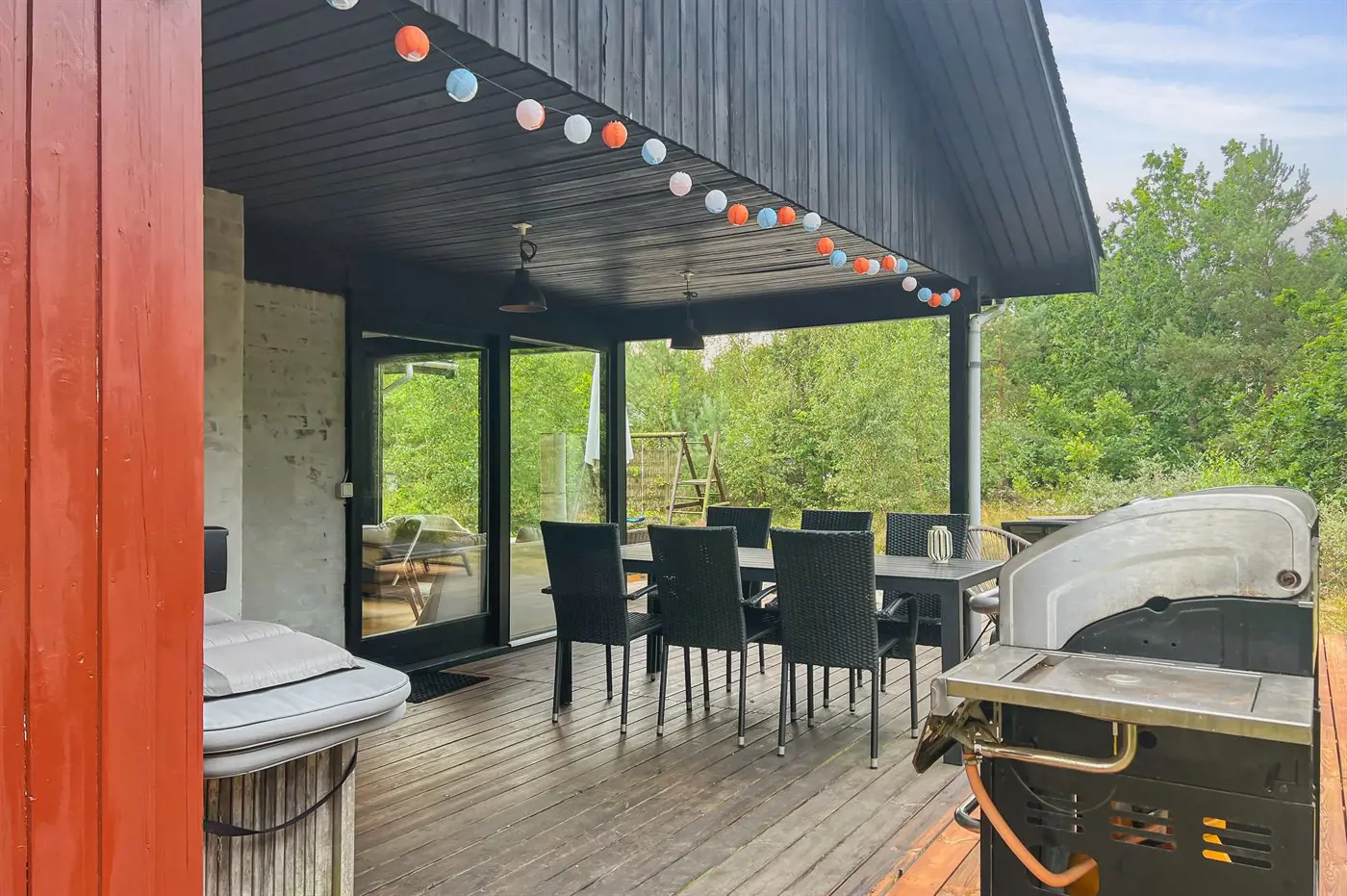 Gut eingerichtetes Ferienhaus in ruhiger Lage in der Nähe des Sandstrandes, wo ein morgendliches Bad einen frischen Start in den Tag ermöglicht. Große Terrassenfenster mit direktem Zugang zur Terrasse sowie ein helles und freundliches Interieur schaffen eine angenehme Urlaubsatmosphäre. Die Sonne, Ruhe und Entspannung auf der teilweise überdachten, nach Süden ausgerichteten Holzterrasse zu genießen, während die Kinder auf dem Naturgrundstück rund um das Haus spielen, kann eine große Freude sein.