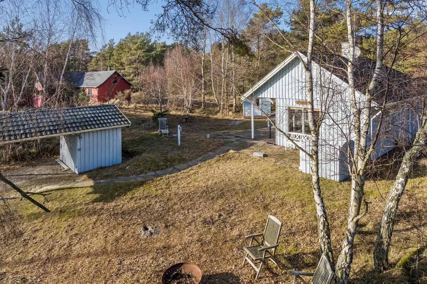 Die Ferienunterkunft liegt auf einem 1200 m² großen Naturgrundstück. Die Entfernung zum Meer beträgt 150 m. Die nächste Einkaufsmöglichkeit liegt 3500 m entfernt. Es steht ein offenes Terrassenareal zur Verfügung. Außerdem gibt es überdachte Terrasse. Geräteraum.Lagerfeuerstelle. Außendusche. Es steht ein Grill zur Verfügung. Parkplatz auf dem Grundstück.