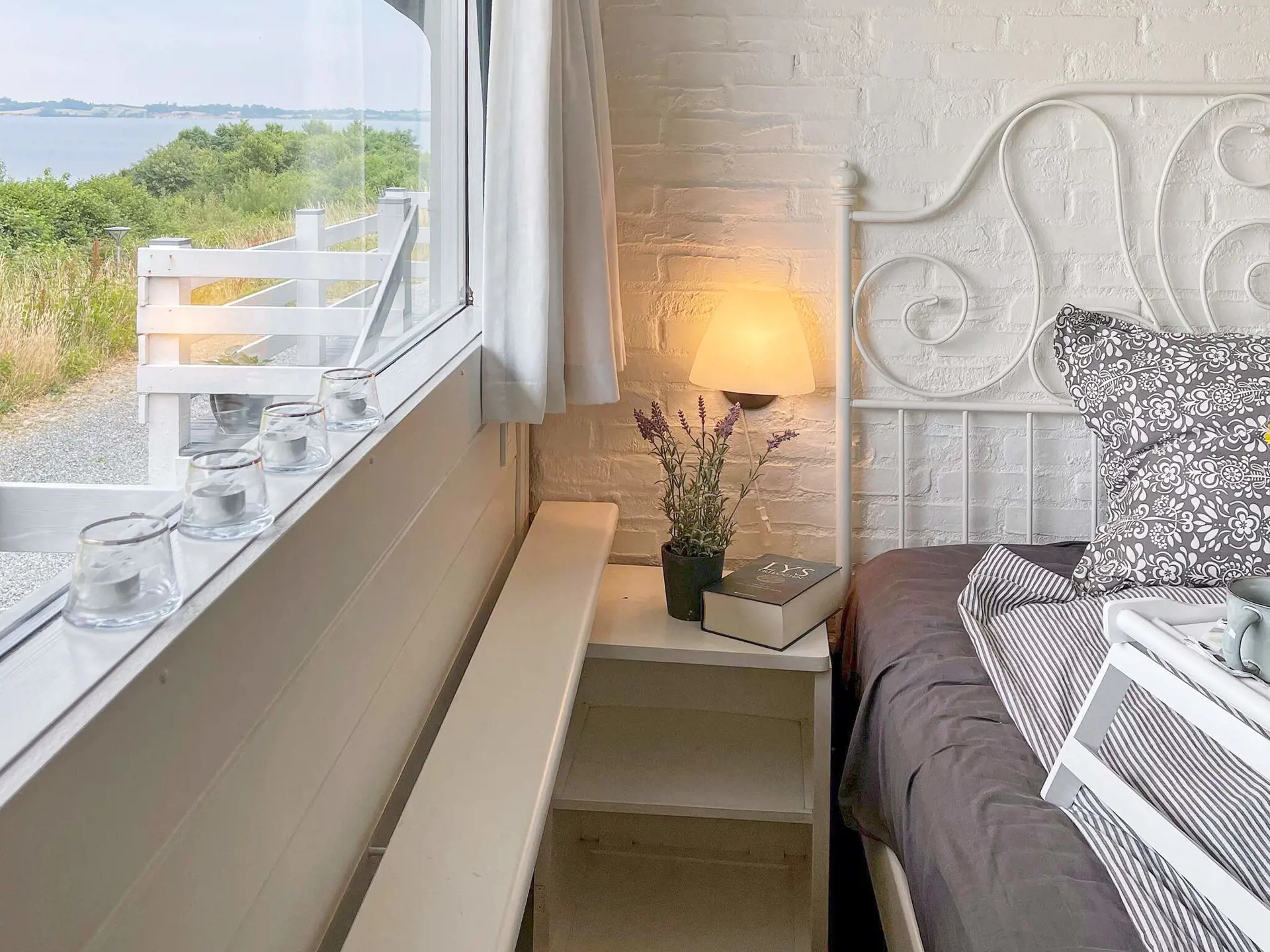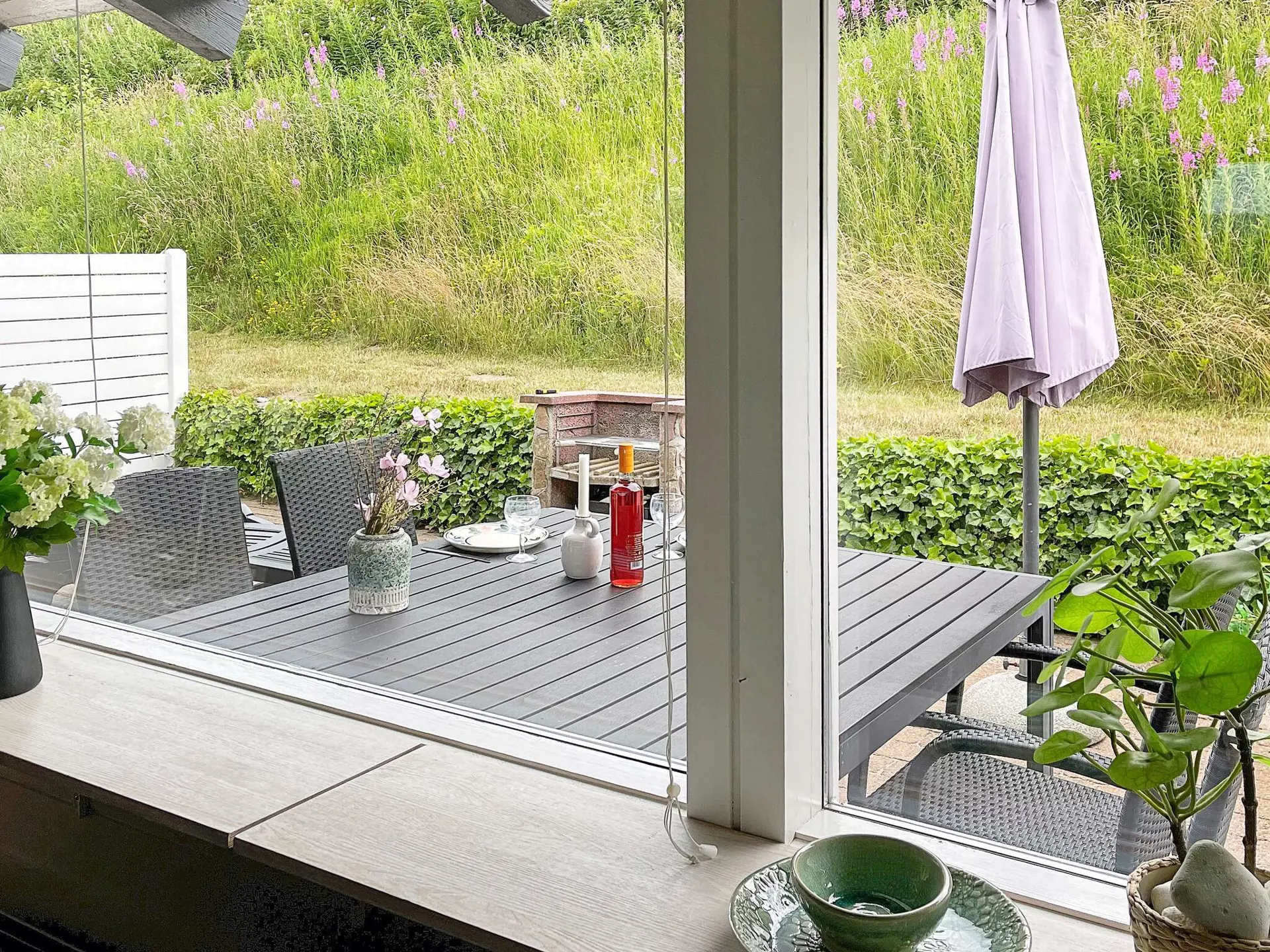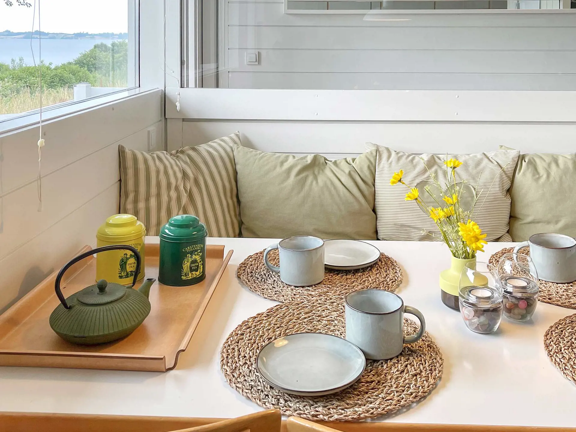 Von der einen Terrasse aus haben Sie Ausblick zur Küste der Genner Bucht und können an klaren Tagen den Bootsverkehr auf dem Wasser beobachten. E gibt Terrassenfläche auf beiden Seiten der Ferienunterkunft, damit man sich von morgens bis abends im Freien aufhalten und entspannen kann. Auf beiden Terrassenflächen stehen dafür schöne Gartenmöbel zur Verfügung.