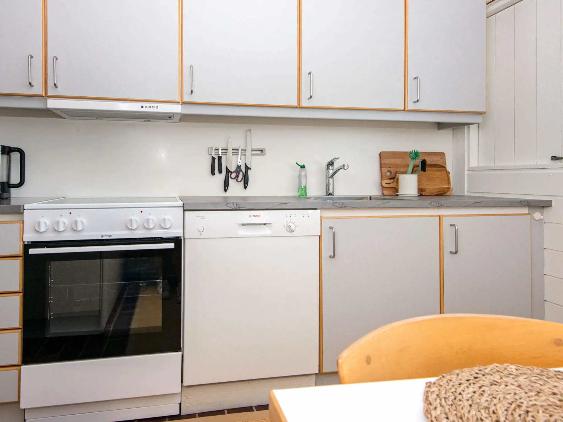 Es gibt zwei Schlafzimmer im Haus. Zur umfassenden Ausstattung gehören auch Geschirrspüler, WLAN, TV mit Chromecast, DVD-Player sowie Soundbar.