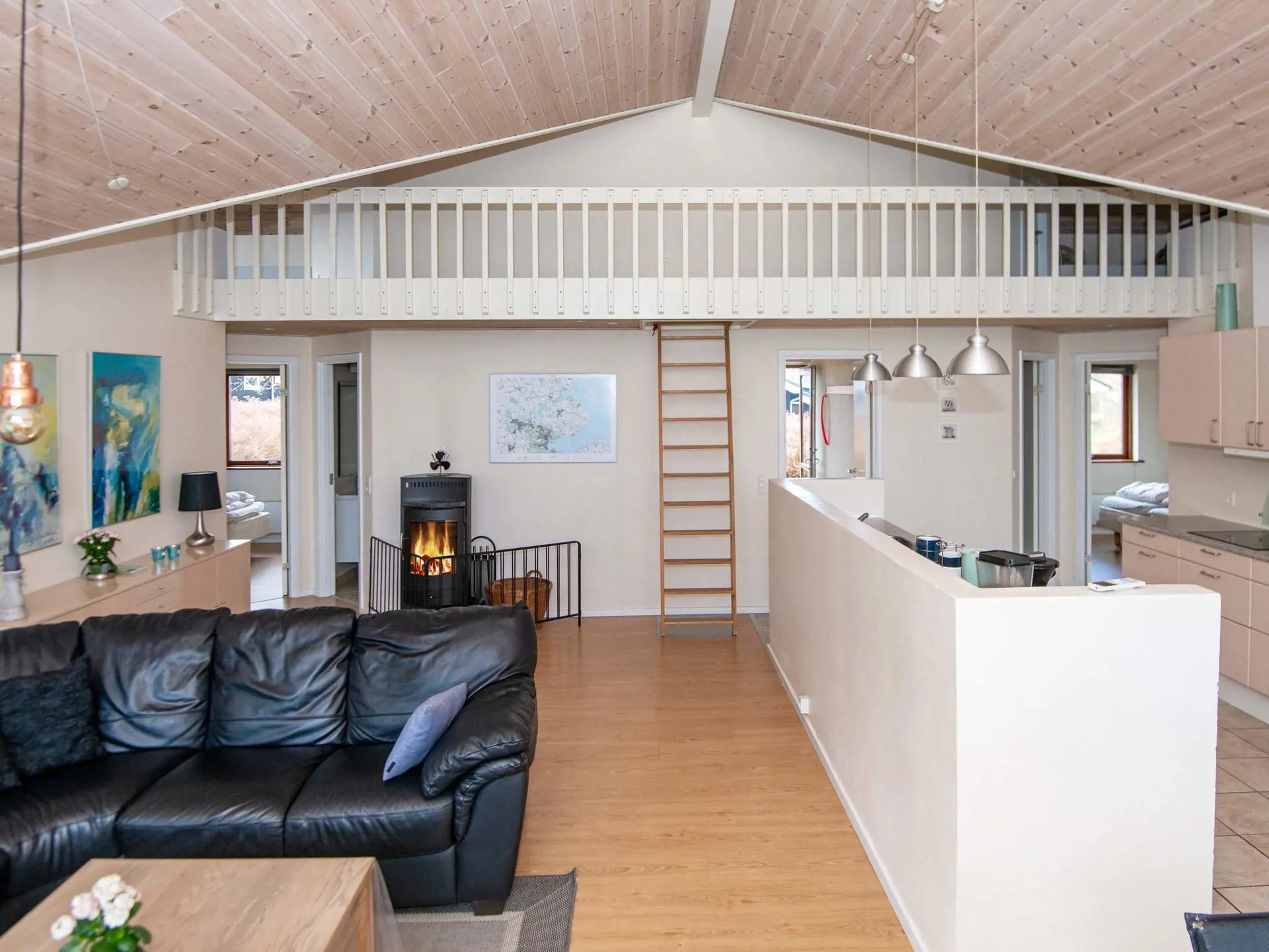 Dieses Ferienhaus liegt in dem landschaftlich reizvollen Gebiet Løjtland. Zu dem Haus gehört ein heller Aufenthaltsbereich mit einem Holzofen, der an kühleren Tagen für Wärme und Gemütlichkeit sorgt. In der Küche und in den Badezimmern gibt es Fußbodenheizung. Insgesamt gibt es vier Schlafzimmer und zwei Schlafböden. Die großen Terrassen führen um das gesamte Haus herum und bieten geschützte Ecken.