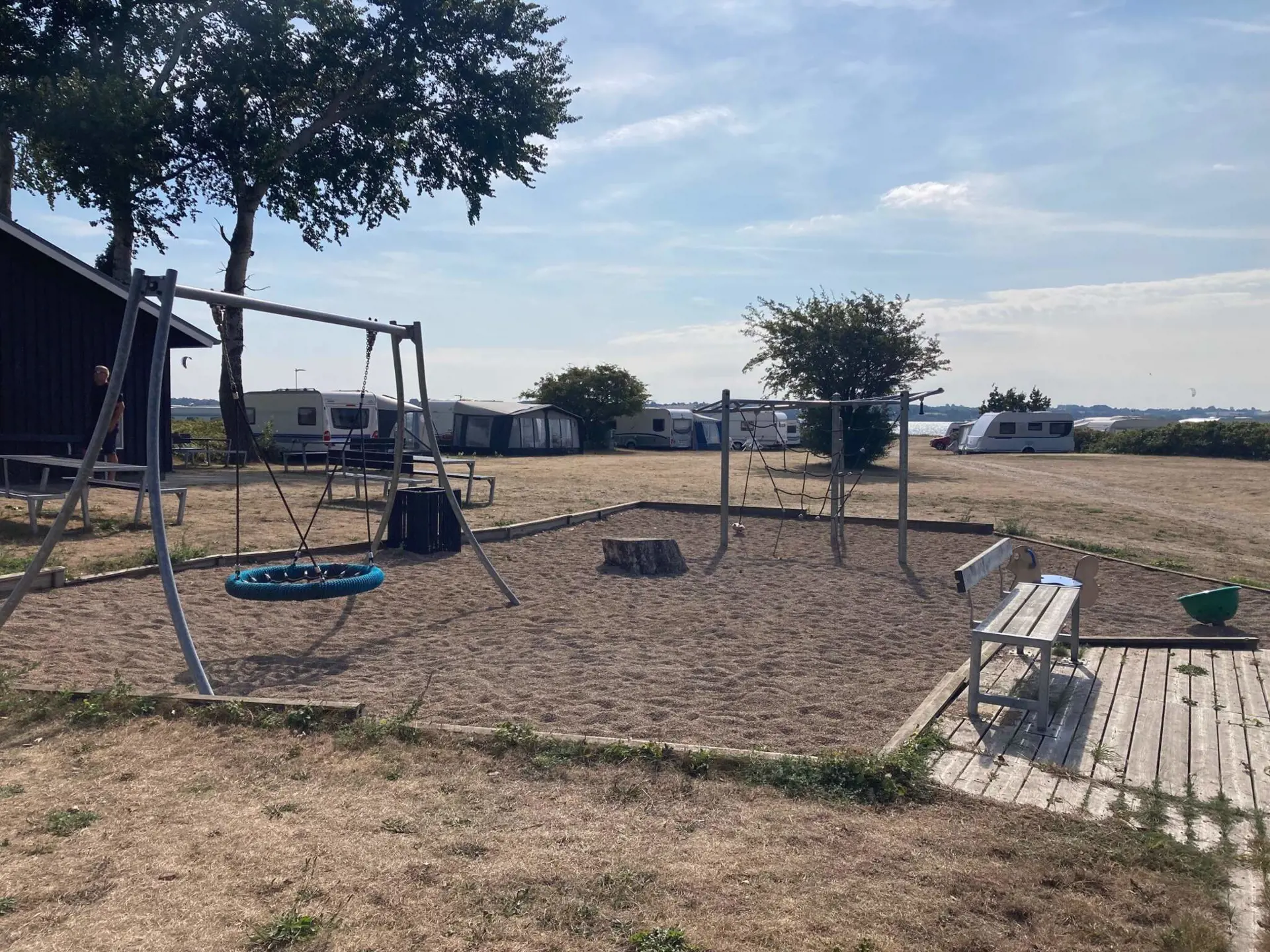 Der schöne Strand von Skarrev ist nur etwa 25 Meter vom Haus entfernt und bietet unter anderem einen Pétanque-Platz und ein Fußballtor sowie einen kleinen Spielplatz auf dem nahegelegenen Campingplatz, den Sie gerne nutzen können. Nach einem erfrischenden Bad im Meer können Sie sich unter der Außendusche auf der Rückseite des Hauses abduschen. Das Ferienhaus liegt auf einem großen Naturgrundstück und verfügt über einen großen Gemeinschaftsbereich, der sich hervorragend für Ballspiele etc. eignet.