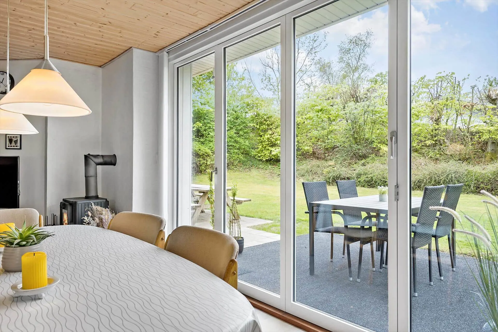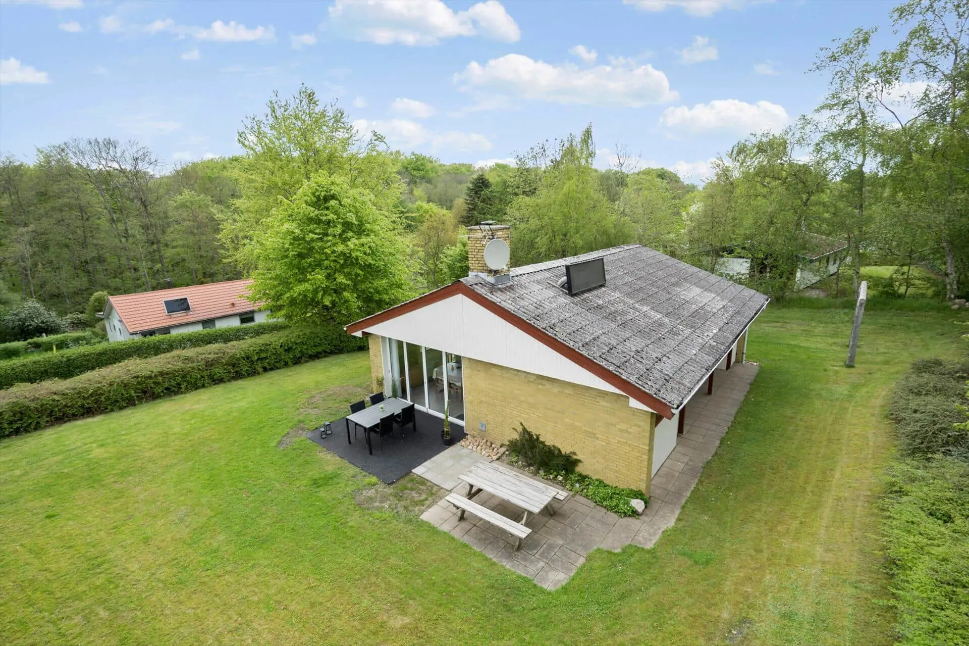 Das Leben im Freien gehört zu den ganz großen Qualitäten dieses Ferienhauses. Das große Grundstück bietet reichlich Platz für Aktivitäten aller Art – ob Ballspiele, Spielen mit den Kindern oder ruhige Stunden in der Sonne. Die schönen Terrassen rund um das Haus – teilweise überdacht – machen es leicht, der Sonne den ganzen Tag zu folgen. Beginne den Morgen mit einer Tasse Kaffee im windgeschützten Bereich, während die Vögel zwitschern, und beende den Tag mit einem gemütlichen Grillabend, bei dem du die frische Luft und die ruhige Atmosphäre genießen kannst. Hier ist Platz für gemeinsame Aktivitäten ebenso wie für stille Momente, in denen du dich in den Gartenmöbeln zurücklehnen und die Gedanken schweifen lassen kannst. Die Terrassen werden schnell zum natürlichen Treffpunkt des Urlaubs und laden zu langen, hellen Sommerabenden in guter Gesellschaft ein.