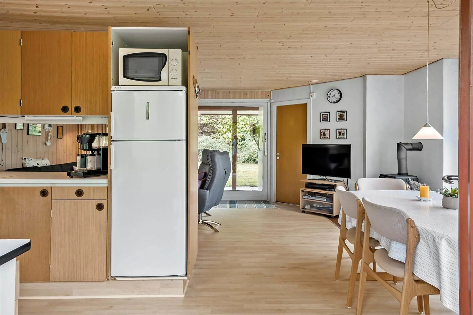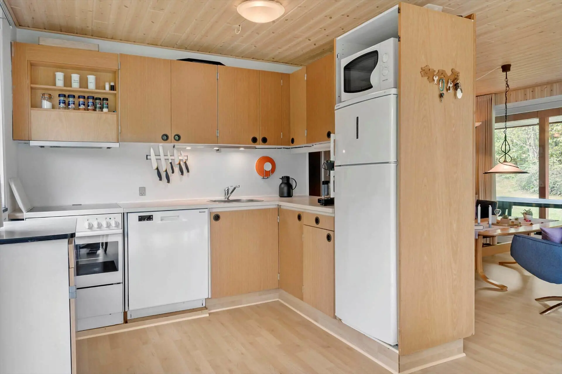 Wenn du das Ferienhaus betrittst, wirst du von einer warmen und gemütlichen Atmosphäre empfangen, die sofort für Entspannung sorgt. Die Einrichtung ist schlicht und einladend und ganz auf Urlaubsstimmung und gemeinsames Beisammensein ausgerichtet. Hier ist Platz, um die Familie rund um den Esstisch zu versammeln – für lange Mahlzeiten, Brettspiele und gute Gespräche über die Erlebnisse des Tages. Das Tageslicht fällt großzügig durch die Fenster und schafft eine angenehme Atmosphäre, in der man leicht zur Ruhe kommt. Das Wohnzimmer lädt zum Entspannen mit einem guten Buch oder zu einer stillen Auszeit ein, während du die Ruhe genießt und die entspannte Urlaubsstimmung auf dich wirken lässt. Die Einrichtung vermittelt ein heimeliges Gefühl, in dem man sich sofort wohlfühlt und den entspannten Rhythmus der Ferien genießen kann – ohne Verpflichtungen, nur Zeit füreinander.
