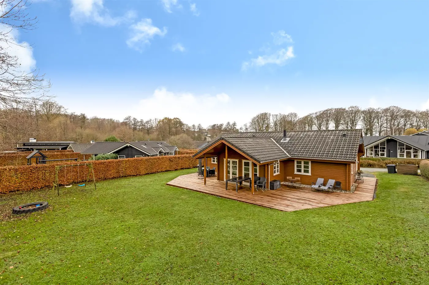 Auf den Terrassen könnt ihr den Tag in Ruhe genießen, während der große Rasenplatz zu Spiel und Gemeinschaft einlädt; für die Kleinsten gibt es sowohl einen Sandkasten als auch eine Schaukel. Vergesst auch nicht Badebekleidung und Sonnencreme, denn die kurze Entfernung zum Strand von Loddenhøj macht es ideal, ein erfrischendes Bad im herrlichen Wasser zu nehmen.