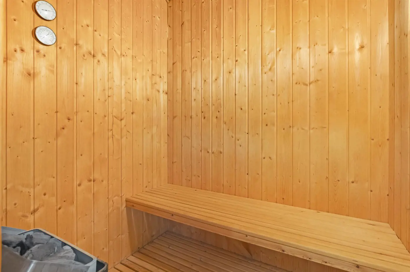 Es gibt 2 Badezimmer mit Duschnische und 2 Toiletten. Fußbodenheizung in 2 Badezimmern. Es steht eine Sauna zur Verfügung in der Sie sich so richtig entspannen können.