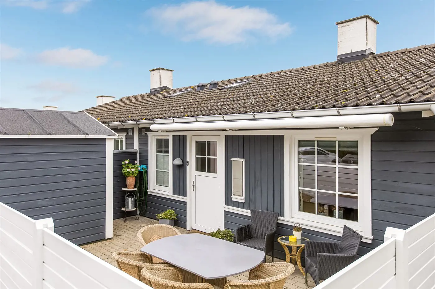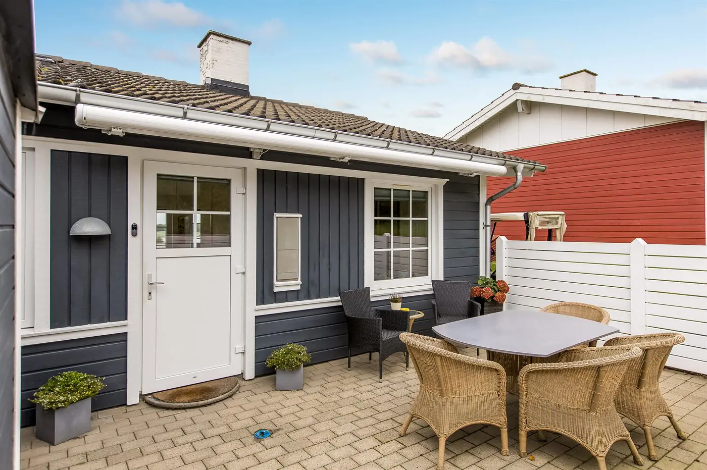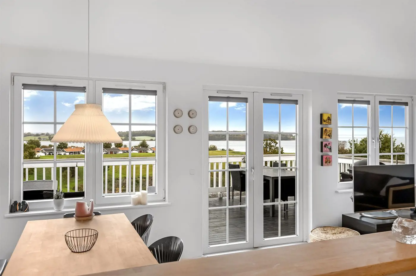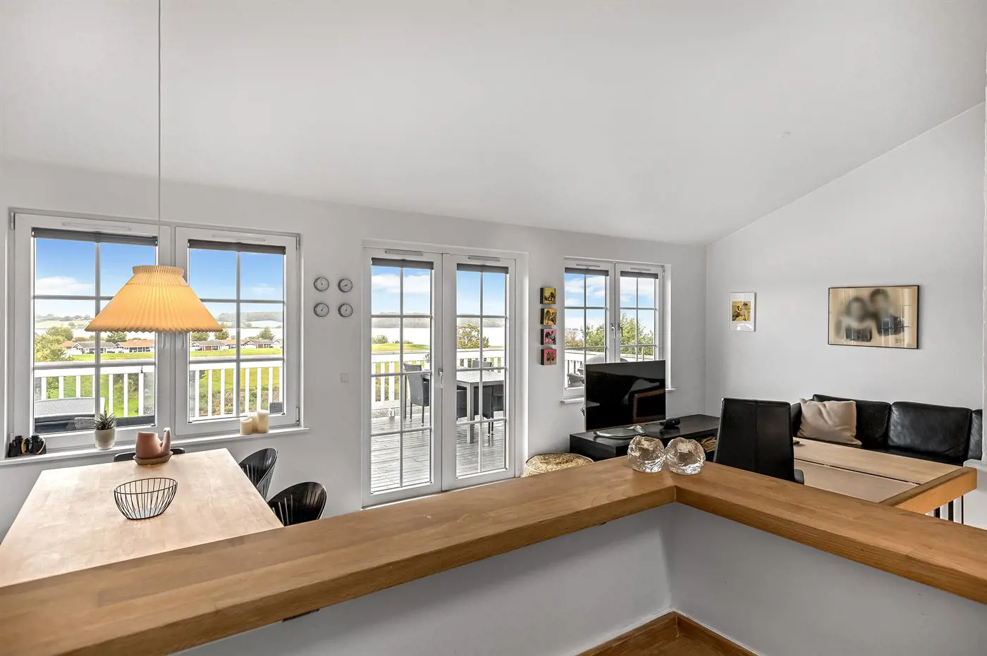 Draußen könnt ihr auf dem gemütlichen, nach Osten ausgerichteten Balkon schöne Stunden an der frischen Luft genießen – mit einem herrlichen Blick auf das Wasser, wo ihr die vorbeifahrenden Schiffe beobachten könnt. Außerdem gibt es eine nette, nach Süden und Westen ausgerichtete Terrasse – hier könnt ihr es euch z. B. mit einem guten Buch gemütlich machen und die ruhigen Abende genießen.