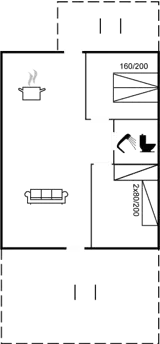 Die Schlafplätze verteilen sich auf 2 Schlafräume. 2 Schlafplätze in einem Doppelbett. 3 Schlafplätze in Etagenbetten.