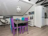 Das Ferienhaus ist geräumig und hat einen offenen Küchen-/Wohnbereich mit Holzofen für kühlere Tage und Zugang zu einer schönen Südwestterrasse für Sommertage. Außerdem zwei Schlafzimmer und ein Bad mit Dusche im Haus, das mit einer energieeffizienten Luft-Luft-Wärmepumpe ausgestattet ist, um den Stromverbrauch und somit die Heizkosten zu reduzieren. Zudem sorgt die Pumpe das ganze Jahr über für ein angenehmes Raumklima.