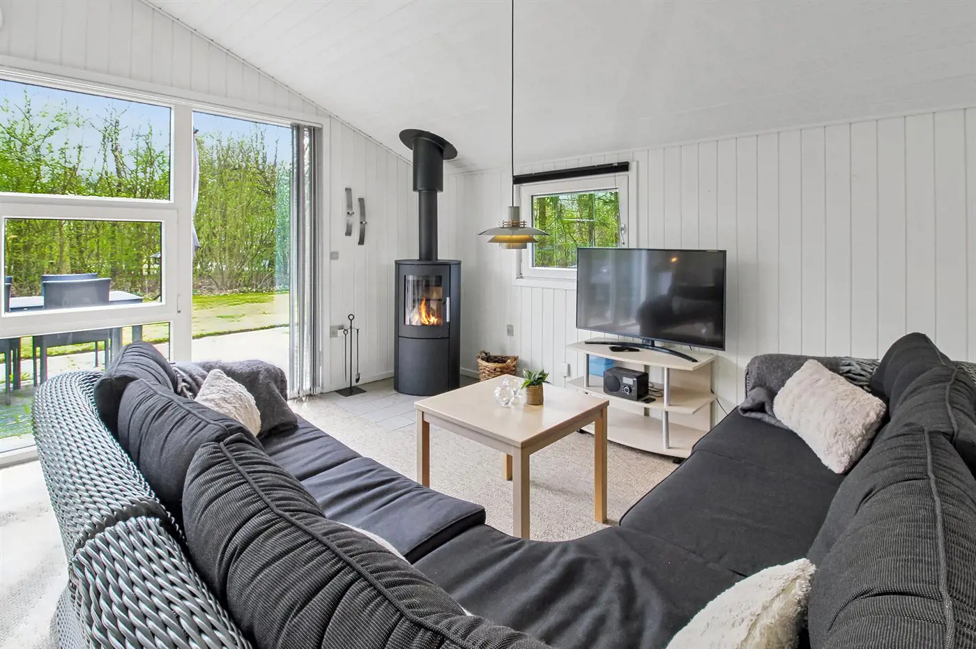 1 Smart-TV.1 Chromecast. Radio. Mindestens 4 dänische Fernsehsender. 1-3 schwedische Fernsehsender. 1-3 norwegische Fernsehsender. Mindestens 4 deutsche Fernsehsender. Es steht kabellose Internetverbindung zur Verfügung.